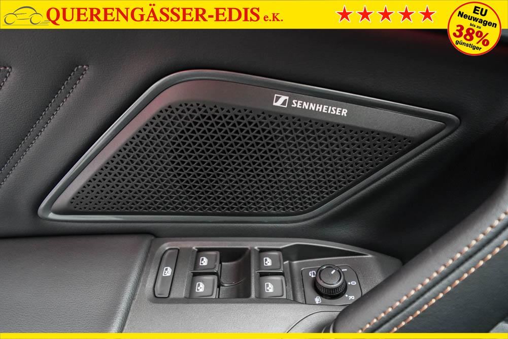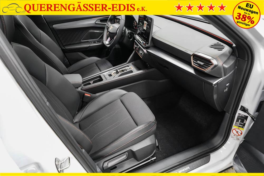 Beifahrersitz höhenverstellbar, Fahrersitz höhenverstellbar, Lederlenkrad, Lendenwirbelstütze, Mittelarmlehne vorne, Sitzbezug Stoff, geteilt umklappbare Rücksitzlehne, Lenkrad höhenverstellbar, Smart Wraparound Interieur Light, Beheizbares Lenkrad, Multifunktionslenkrad, Isofix, Isofix Beifahrersitz, abgedunkelte Scheiben, 18 Zoll Alufelgen , Dachreling schwarz, ABS, Alarmanlage, Außenspiegel elektrisch einstell-/anklappbar, Fensterheber elektrisch, Kopfairbags, Nebelscheinwerfer, Seitenairbags, Servolenkung, Sitzheizung, ESP, Wegfahrsperre, Außenspiegel beheizbar, Beifahrerairbag, Fahrerairbag, Parkpilot hinten, Parkpilot vorne, Reifendruckkontrolle, Regensensor, Lichtsensor, Digital Cockpit, Anhängekupplung schwenkbar, Tempomat Abstand ACC, Spurhalteassistent, Verkehrszeichenerkennung, LED-Scheinwerfer, Tagfahrlicht, Rückfahrkamera, Elektrische Heckklappe inkl. Virtual Pedal, KeylessEntry, StartStopSystem, Innenspiegel automatisch abbl., Müdigkeitswarnsystem, Notrufsystem, Schaltwippen, Klimaautomatik 3-Zonen, Geschwindigkeitsbegrenzer, Android Auto, Apple Carplay, Freisprecheinrichtung, Induktionsladestation, Sprachsteuerung, USB, Radio, Radio DAB, Bluetooth, Bordcomputer, IMMERSIVE by Sennheiser, Cupra Full Link, Full Link, variabler Ladeboden,