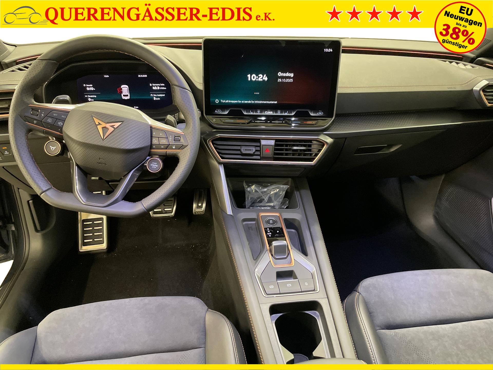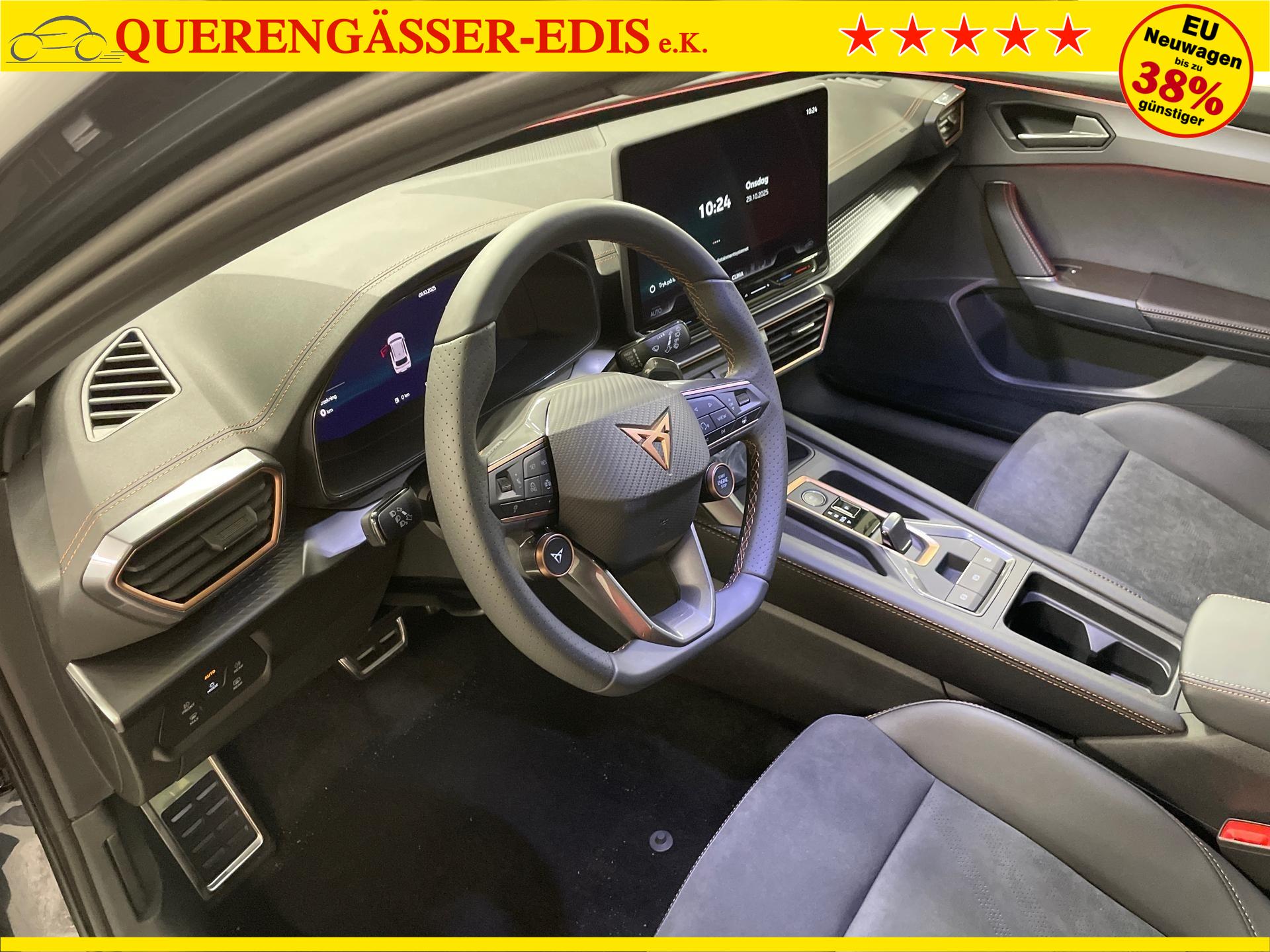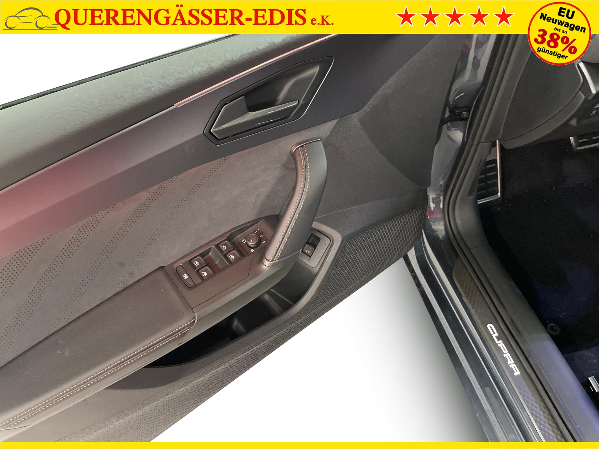Innenausstattung CG - CUPRA Sportschalensitze vorne mit Sitzmittelbahn in Dinamica, Schwarz mit Blau Akzenten