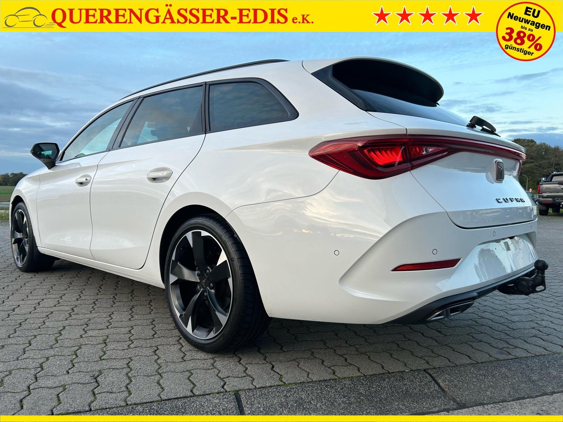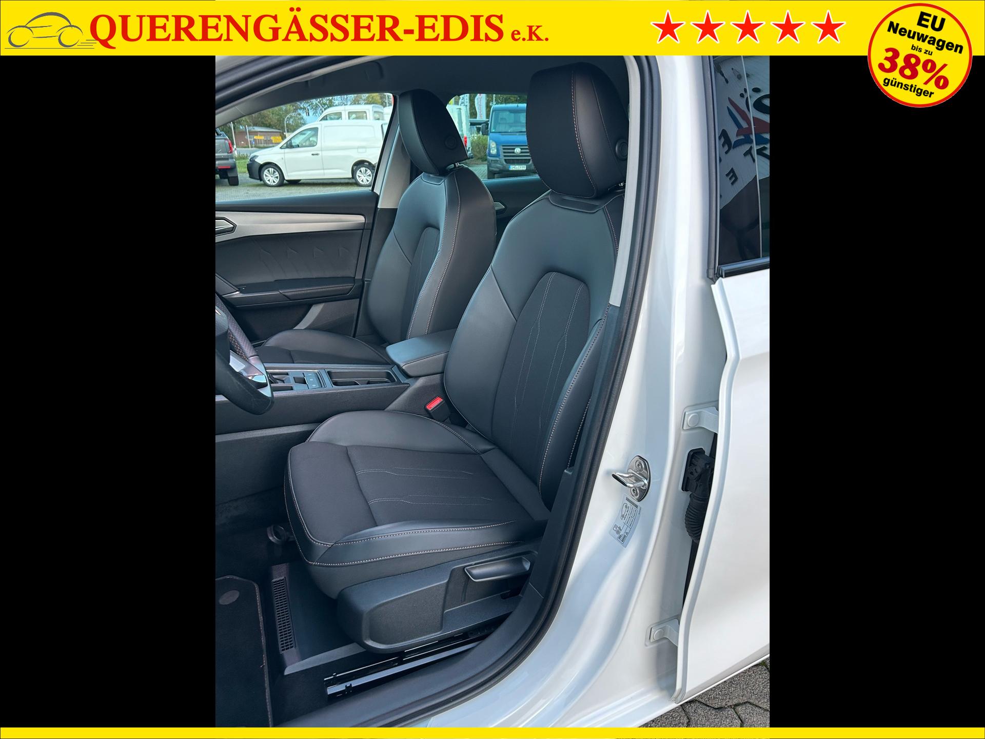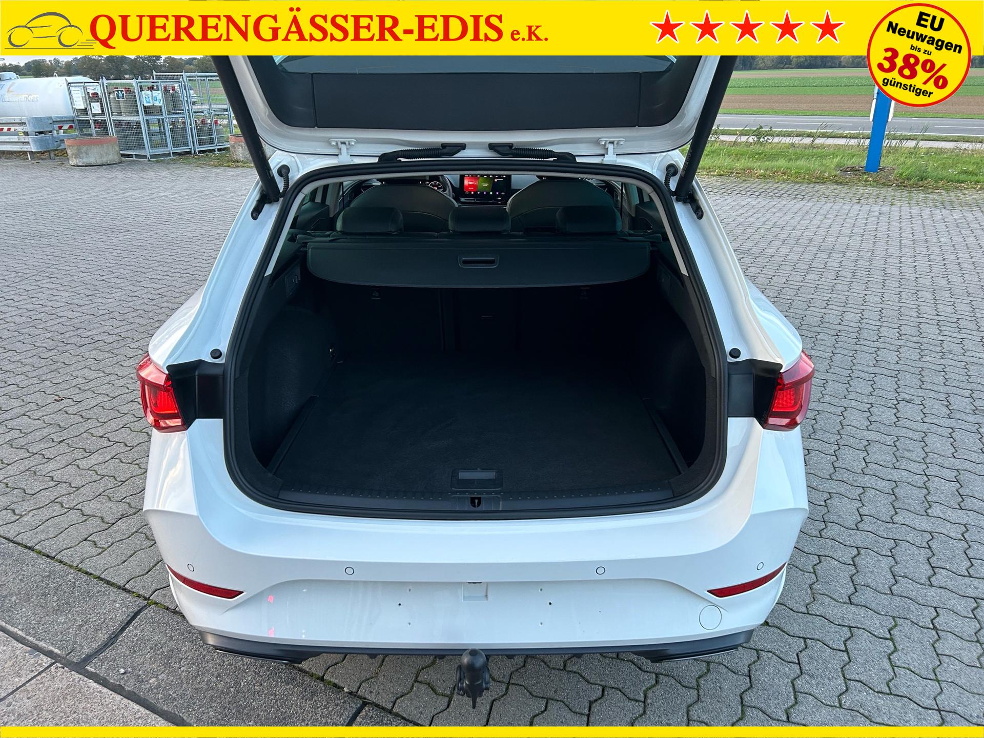 Cupra Leon ST 1.5 eTSI 150PS mit DSG-Getriebe in Candy Weiß mit folgender Sonderausstattung:WinterpaketElektrische Heckklappe inkl. Virtuelles PedalWireless Full LinkVision-Paket PlusAnhängerkupplung schwenkbarSeitenairbags vorne und hintenGarantieverlängerung für 1 weiteres Jahr oder 90.000kmDas Fahrzeug kann deutschlandweit angeliefert werden.Elektrische Fensterheber vorne und hintenHöhenverstellbares LenkradMittelarmlehneHöhenverstellbarer Fahrer- und BeifahrersitzLendenwirbelstütze für Fahrer- und BeifahrerInnenspiegel automatisch abblendendLaderaumabdeckungDoppelter LaderaumbodenSitzbank hinten geteiltRadio / USBBluetooth / FreisprecheinrichtungReifendruckkontrolleRückleuchten mit LEDAußenspiegel elektrisch verstell,- beheiz- und anklappbarSchaltwippenLED InnenlichtpaketVoll LED ScheinwerferSpurhalteassistentUmfeldbeobachtungssystem "Front Assist" mit City-Notbremsfunktion (Notbremsassistent)EU-FahrzeugGarantiebeginn 12/2023Für weitere Fragen stehen wir Ihnen telefonisch oder per E-Mail gern zur Verfügung. Gern nehmen wir Ihr Fahrzeug in Zahlung. Bei Bedarf bieten wir Ihnen verschiedene Finanzierungsmodelle unserer Partnerbanken - individuell auf Sie zugeschnitten. Auch Finanzierungsübernahme, Verrechnung des Altfahrzeugs in die Neufinanzierung und Kreditablösung. Irrtümer, Zwischenverkauf und Änderungen vorbehalten. Ausstattungs- und Verbrauchsangaben basieren auf der Abfrage der VIN-Daten über das DAT SilverDAT System. In Einzelfällen kann es zu Datenfehlern kommen. Die gemachten Angaben gelten nicht als zugesicherte Eigenschaft im Sinne des BGB 434 Abs. 1 Satz 3.
