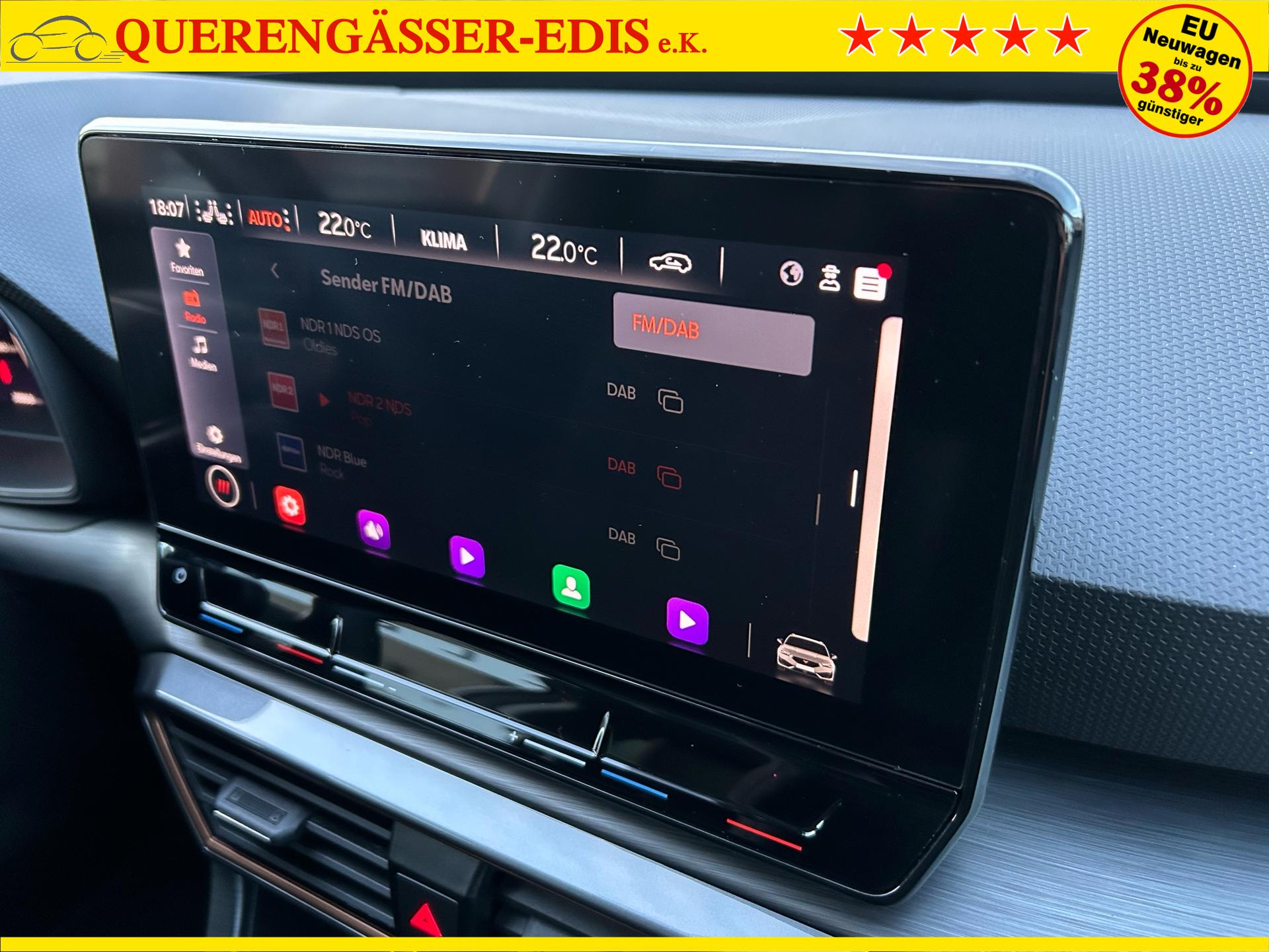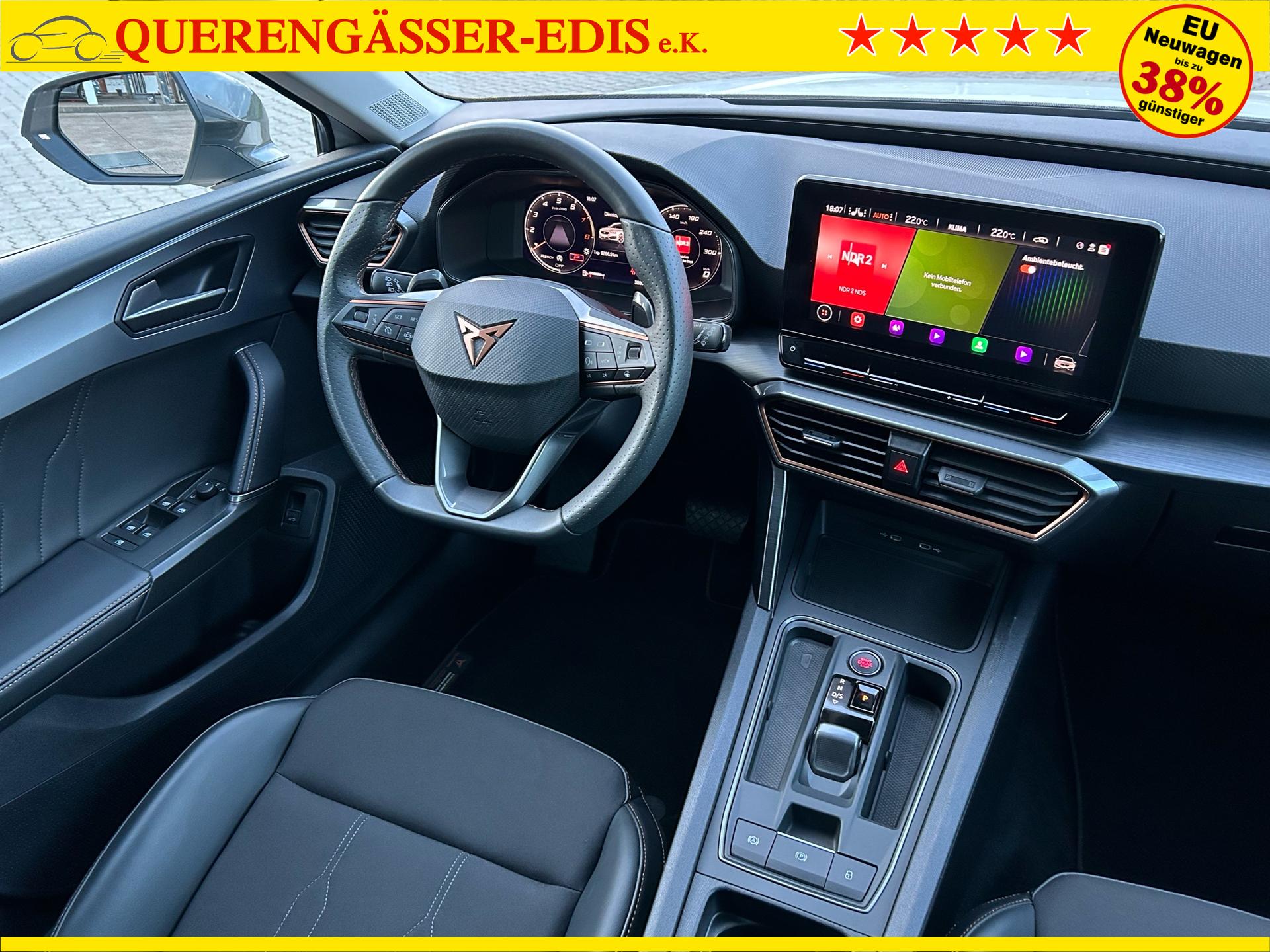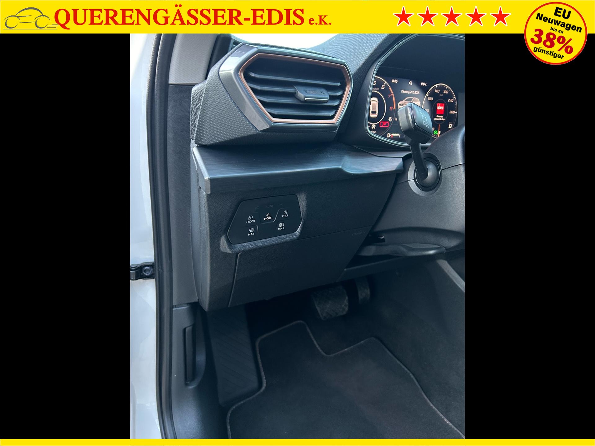Cupra Leon ST 1.5 eTSI 150PS mit DSG-Getriebe in Candy Weiß mit folgender Sonderausstattung:WinterpaketElektrische Heckklappe inkl. Virtuelles PedalWireless Full LinkVision-Paket PlusAnhängerkupplung schwenkbarSeitenairbags vorne und hintenGarantieverlängerung für 1 weiteres Jahr oder 90.000kmDas Fahrzeug kann deutschlandweit angeliefert werden.Elektrische Fensterheber vorne und hintenHöhenverstellbares LenkradMittelarmlehneHöhenverstellbarer Fahrer- und BeifahrersitzLendenwirbelstütze für Fahrer- und BeifahrerInnenspiegel automatisch abblendendLaderaumabdeckungDoppelter LaderaumbodenSitzbank hinten geteiltRadio / USBBluetooth / FreisprecheinrichtungReifendruckkontrolleRückleuchten mit LEDAußenspiegel elektrisch verstell,- beheiz- und anklappbarSchaltwippenLED InnenlichtpaketVoll LED ScheinwerferSpurhalteassistentUmfeldbeobachtungssystem "Front Assist" mit City-Notbremsfunktion (Notbremsassistent)EU-FahrzeugGarantiebeginn 12/2023Für weitere Fragen stehen wir Ihnen telefonisch oder per E-Mail gern zur Verfügung. Gern nehmen wir Ihr Fahrzeug in Zahlung. Bei Bedarf bieten wir Ihnen verschiedene Finanzierungsmodelle unserer Partnerbanken - individuell auf Sie zugeschnitten. Auch Finanzierungsübernahme, Verrechnung des Altfahrzeugs in die Neufinanzierung und Kreditablösung. Irrtümer, Zwischenverkauf und Änderungen vorbehalten. Ausstattungs- und Verbrauchsangaben basieren auf der Abfrage der VIN-Daten über das DAT SilverDAT System. In Einzelfällen kann es zu Datenfehlern kommen. Die gemachten Angaben gelten nicht als zugesicherte Eigenschaft im Sinne des BGB 434 Abs. 1 Satz 3.
