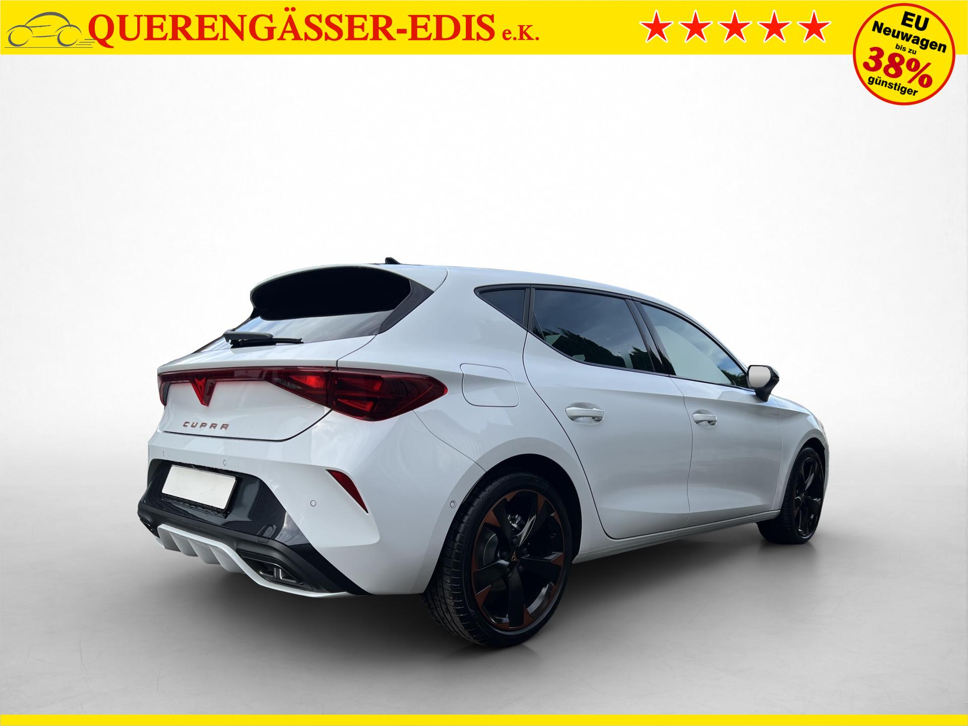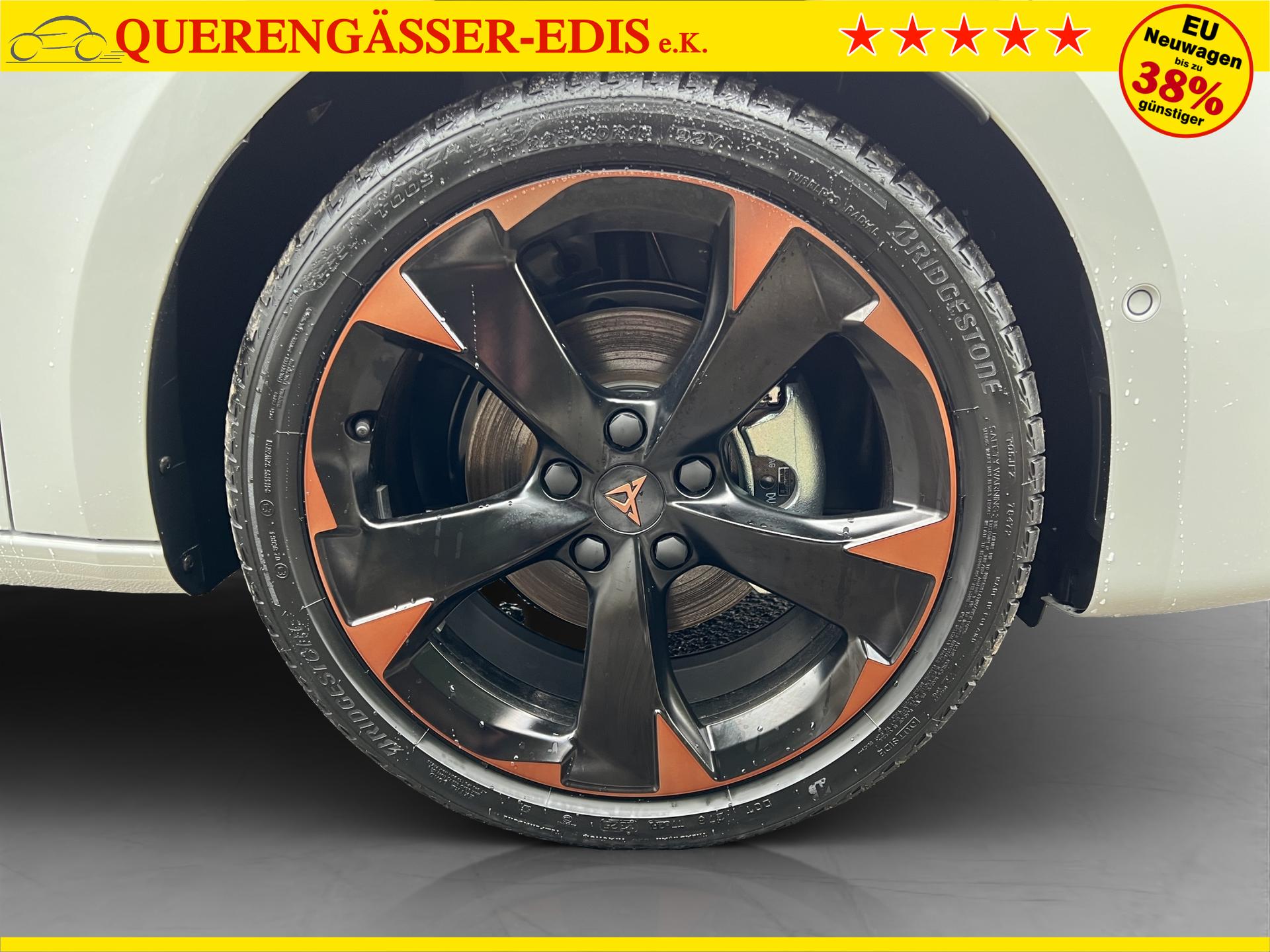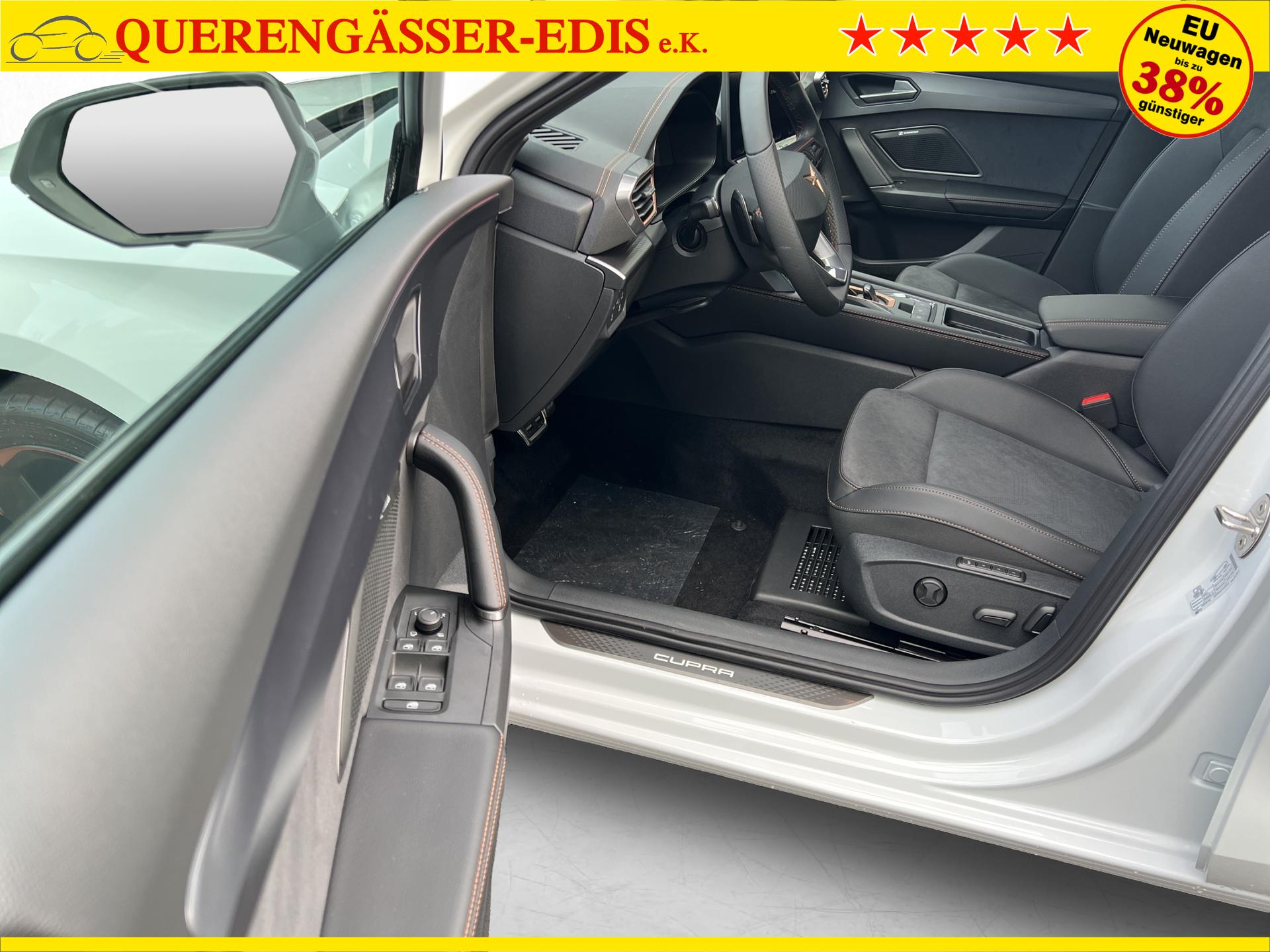 SERIENAUSSTATTUNG: ACC bis 210km/h, Fernlichtassistent, 3-Zonen-Climatronic, Digital Cockpit Plus, Induktive Ladefunktion, Wireless Full Link, Supersport-Multifunktionslederlenkrad beheizbar, LED-Tagfahrlicht, 230V Steckdose im Kofferraum, 2* USB-C vorne 2* USB-C hinten, Fahrer- und Beifahrerairbag, Außenspiegel elektrisch verstell- , beheiz- und anklappbar, Coming Home-/ Leaving Home Funktion, Dachhimmel schwarz, XDS, Front Assist, Innenspiegel autom. abblendbar, ISOFIX, Mittelarmlehne vorne, abgedunkelte Seitenscheiben ab der B-Säule, Sprachsteuerung, Cupra Drive Profil, Parksensoren vorne und hinten, Licht und Regensensor, DAB, el. Handbremse inkl. auto Hold, el. Fensterheber vorne und hinten, Gepäckraumabdeckung, LED- Nebelscheinwerfer, LED-Rückleuchten mit dynamischen Blinker, Mittelarmlehne hinten, Rücksitzlehne geteilt umklappbar, Reifendruckkontrolle, Start-Stopp- Funktion, Tank 45l, Verkehrszeichenerkennung, el. Wegfahrsperre, eCall, uvm.