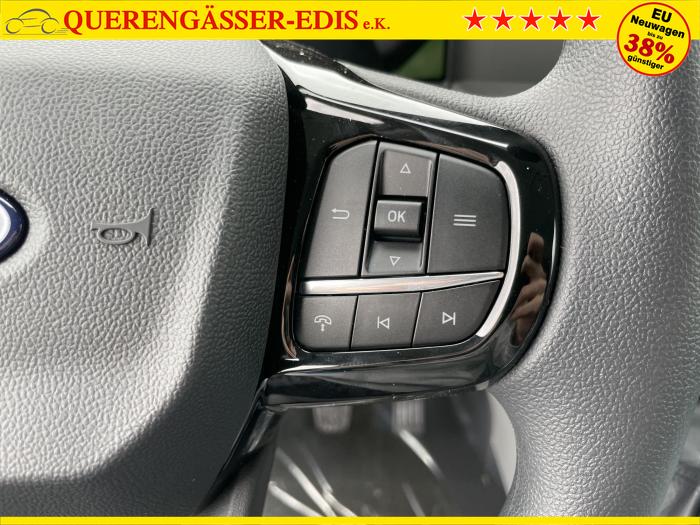 Digitaler Radioempfang DAB/DAB+, Ford Audiosystem mit 13 Multifunktionsdisplay und Ford SYNC 4, Halogenscheinwerfer, Laderaumbeleuchtung (LED), extra hell, Fensterheber vorn, elektrisch mit Quickdown/- up-Schaltung für Fahrerseite, 8 Verzurrösen im Laderaum, Laderaumboden Vinyl-Bodenverkleidung Easy Clean, Laderaumschutz-Paket, Lenkrad aus Kunststoff, Seitenwandverkleidung, hoch inkl. Verkleidung der Hecktür, Trennwand Metall, ohne Fenster, Frontscheibe, beheizbar, Klimaautomatik vorne, Sitz-Paket 11A, Technologie-Paket 2, 16 Stahlräder, Reifen-Reparatur-Set, Elektronisches Sicherheits- und Stabilitätsprogramm (ESP) mit Sicherheits-Bremsassistent (EBA), Beifahrer-Doppelsitz, mit Durchladeklappe, Fahrersitz, 4-fach manuell einstellbar, Lendenwirbelstütze für Fahrer, Stoffbezug, Black Onyx, Ford Garantieverlängerung um 3 Jahre, max. 200.000 km, Fahrspur-Assistent inkl Fahrspurhalte-Assistent, Ford Power-Startfunktion (schlüsselfreies Starten), Geschwindigkeitsregelanlage, Intelligenter Geschwindigkeitsbegrenzer mit Tempolimit-Anzeige, Müdigkeitswarner, Park-Pilot-System vorn und hinten, Pre-Collision Assist, kamera-basiert, Reifendruckkkontrollsystem (TPMS), Rückfahrkamera, Zentralverriegelung mit Fernbedienung, Start-Stopp System, 180-Grad-Doppelflügel-Hecktür, Außenspiegel, elektrisch einstellbar und beheizbar, Elektrisches Vorbereitungsset für Anhängevorrichtung, Erweiterter Kraftstoffbehälter 70 Liter, Schiebetür, rechts, EU-Fahrzeug mit Tageszulassung