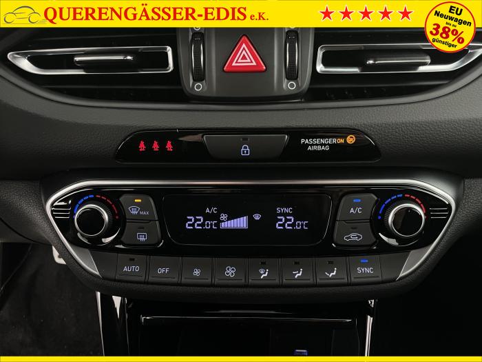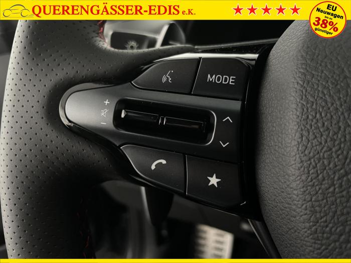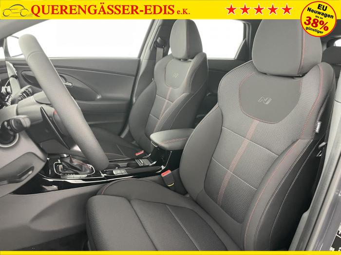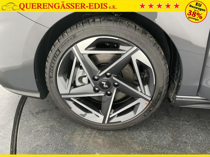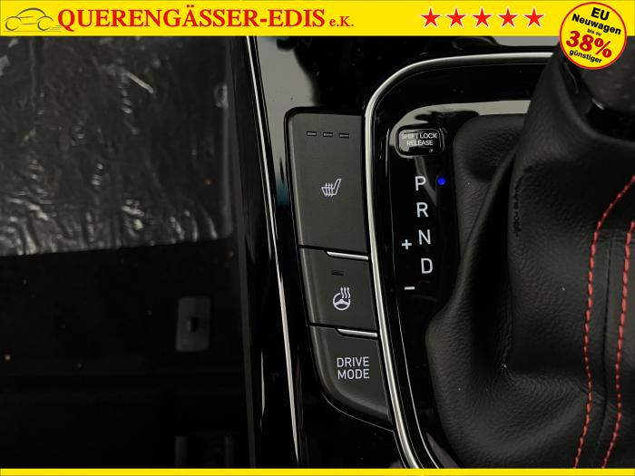Android Auto, Apple CarPlay, Bluetooth, Navigationssystem 10,25'', Sprachsteuerung, USB-Anschluss, Bi-LED-Scheinwerfer, LED Tagfahrlicht, LED-Rückleuchten, Lichtsensor, Elektrische Fensterhebern vorn und hinten, Getönte Scheiben, Dachhimmel in Schwarz, Gepäcktrennnetz, Lenkradheizung, Mittelarmlehne vorn und hinten, Spiegel automatisch abblendbar, Sport - Multifunktionslenkrad, Sport-Pedale in Edelstahl, Automatische Zweizonen - Klimaregelung , 18'' Alufelgen der Größe 225/40 R18, Alarmanlage, Elektrische Parkbremse mit AutoHold, Fahrer- und Beifahrerairbag, ISOFIX + TopTether, Vorder- und Seitenaribags, Beifahrersitz höhenverstellbar, Fahrersitz höhenverstellbar, Fahrersitz mit elektrischer Lendenwirbelstütze, Vordersitze beheizbar, Hyundai Garantie 5 Jahre, Aktiver Spurfolgeassistent LFA, Autonomer Notbremsassistent, Berganfahrassistent HAC, Fahrprofilauswahl, Frontkollisionswarner mit Fußgänger-/Fahrradfahrererken-nung FCA, Intelligente Geschwindigkeitsassistent ISLA, Park Distance Control vorne und hinten, Reifendruck-Kontrollsystem, Rückfahrkamera, Spurhalteassistent LKA, Tempomat, Zentralverriegelung mit Fernbedienung, [ISLA] adaptive Geschwindigkeitsregelanlage, Start/Stopp-Automatik, Außenspiegel elektrisch anklappbar, Außenspiegel elektrisch beheizbar, Außenspiegel elektrisch einstellbar, Außenspiegelgehäuse in Schwarz, Dachreling, EU-Fahrzeug mit Tageszulassung