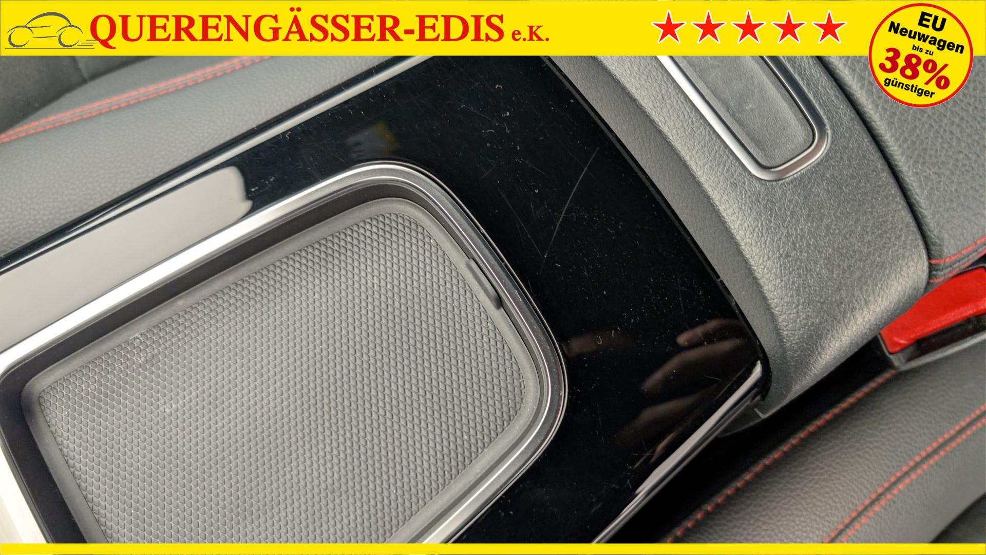 • Multifunktions-Sportlenkrad in Leder Nappa mit roten Ziernahten, Abflachung im unteren Bereich, Perforation im Griffbereich, Touchpad-Bedienung links und rechts sowie Schaltwippen am Lenkrad in Silberchrom