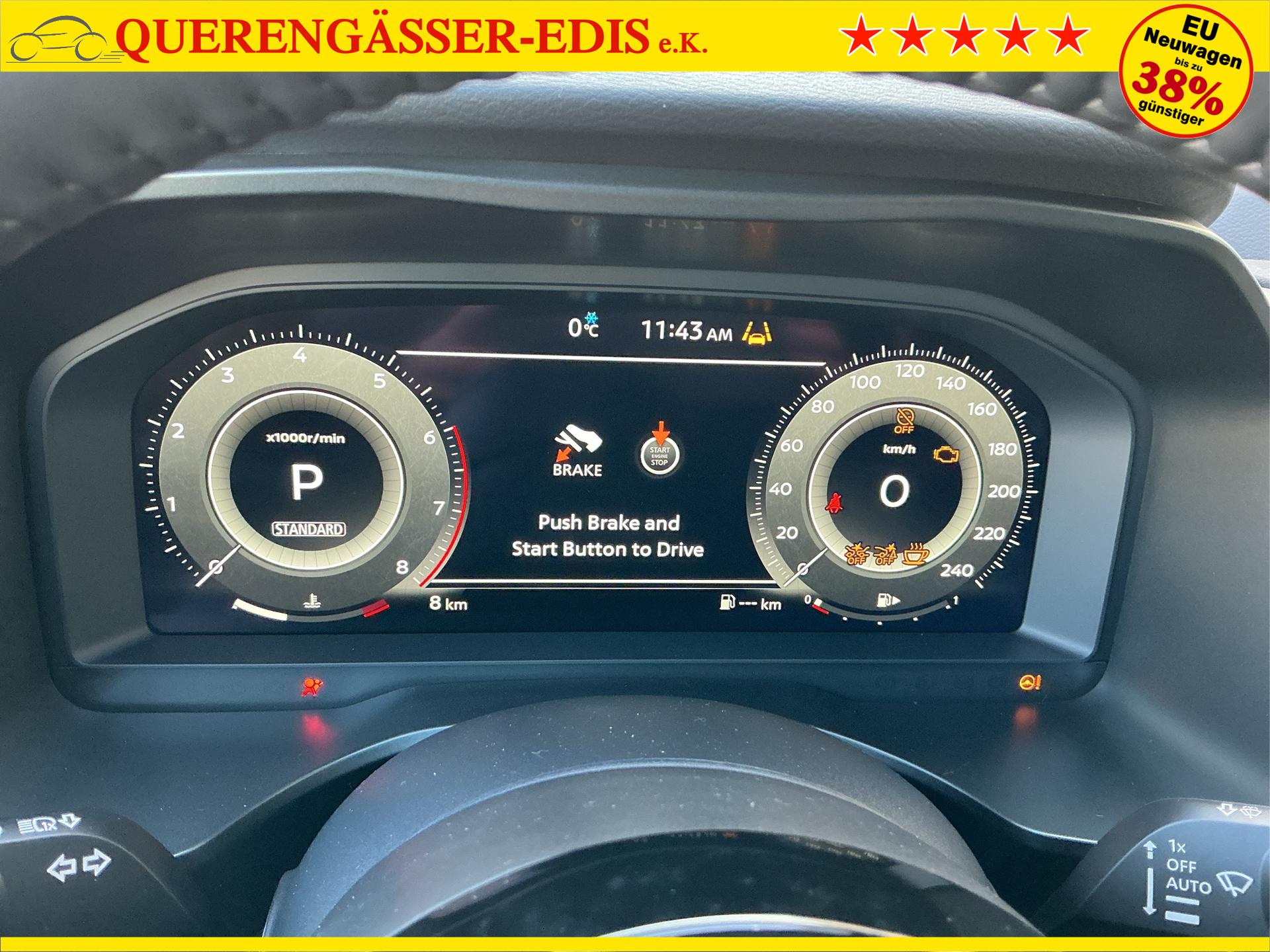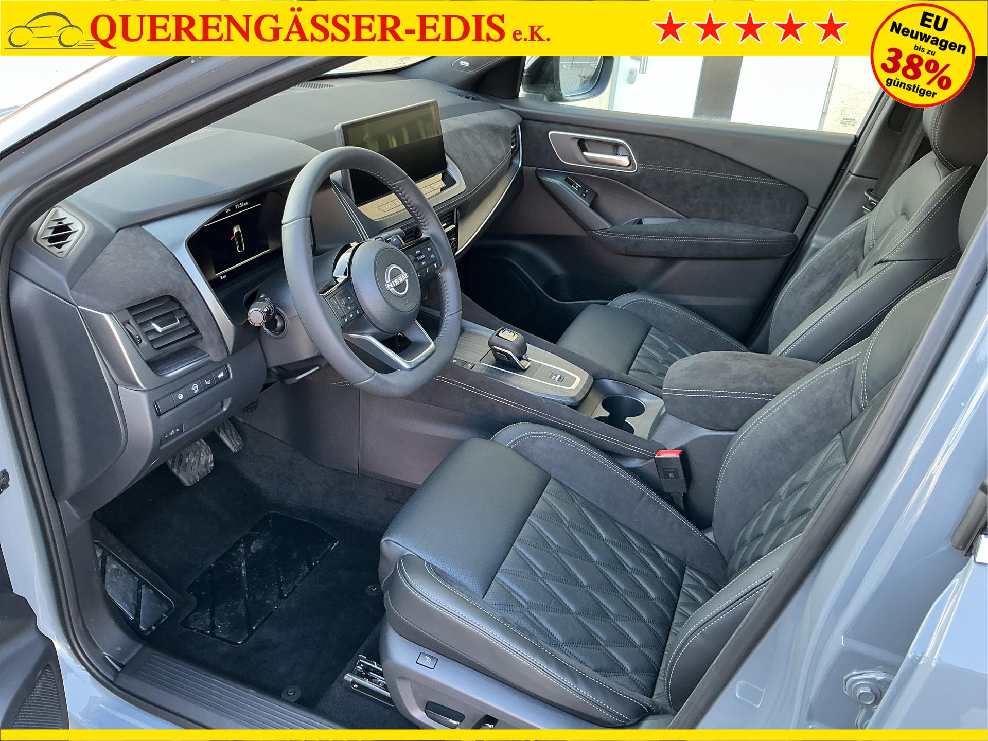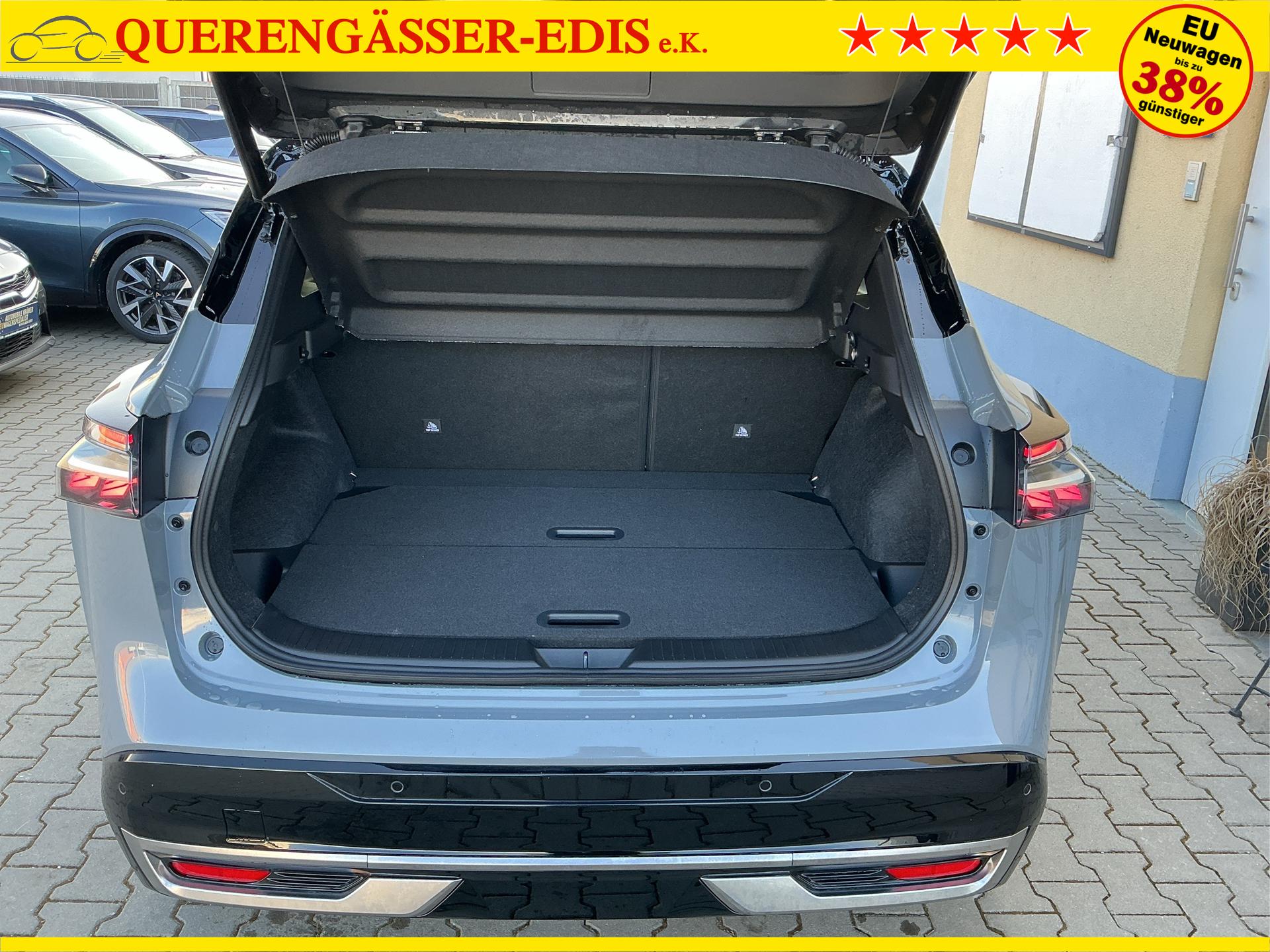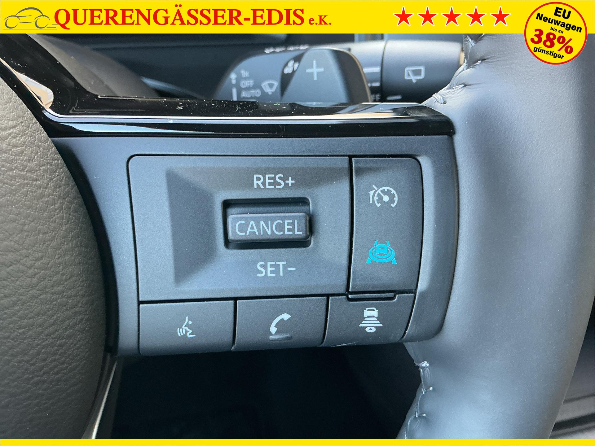 • NISSAN Fahrerassistenzsysteme › Intelligenter Adaptiver Geschwindigkeits- und Abstands-Assistent › Intelligenter Autonomer Notbrems-Assistent hinten für feststehende und sich langsam bewegende Objekte › Intelligenter Autonomer Notbrems-Assistent vorne mit Fußgänger- und Radfahrererkennung und KreuzungsAssistent › Intelligenter Frontkollisionswarnungs-Assistent › Intelligente Müdigkeitserkennung › Intelligenter Spurhalte-Assistent aktiv mit korrigierendem Bremseingriff › Querverkehrswarner, hinten › Totwinkel-Assistent aktiv mit korrigierendem Bremseingriff vorhanden