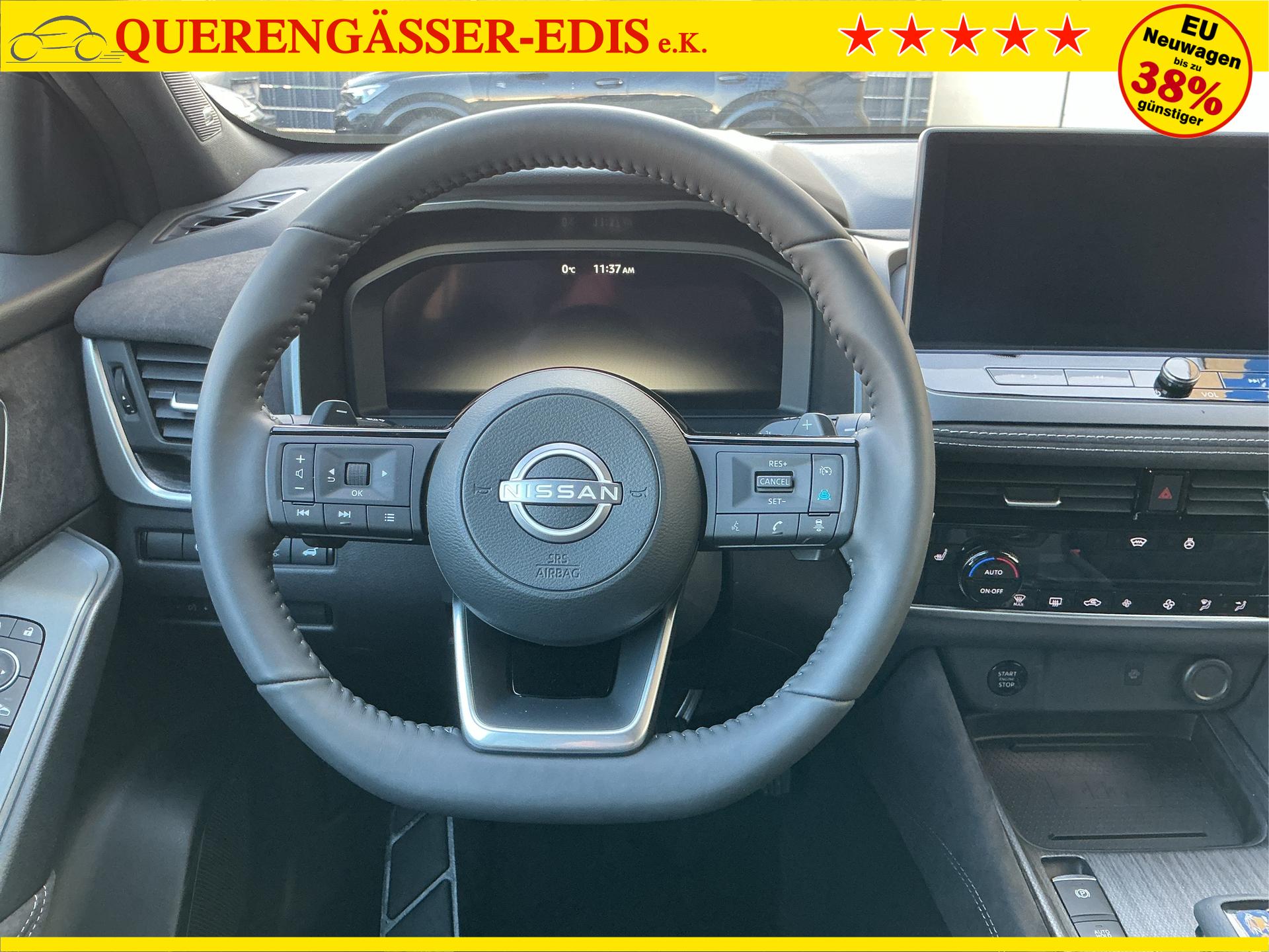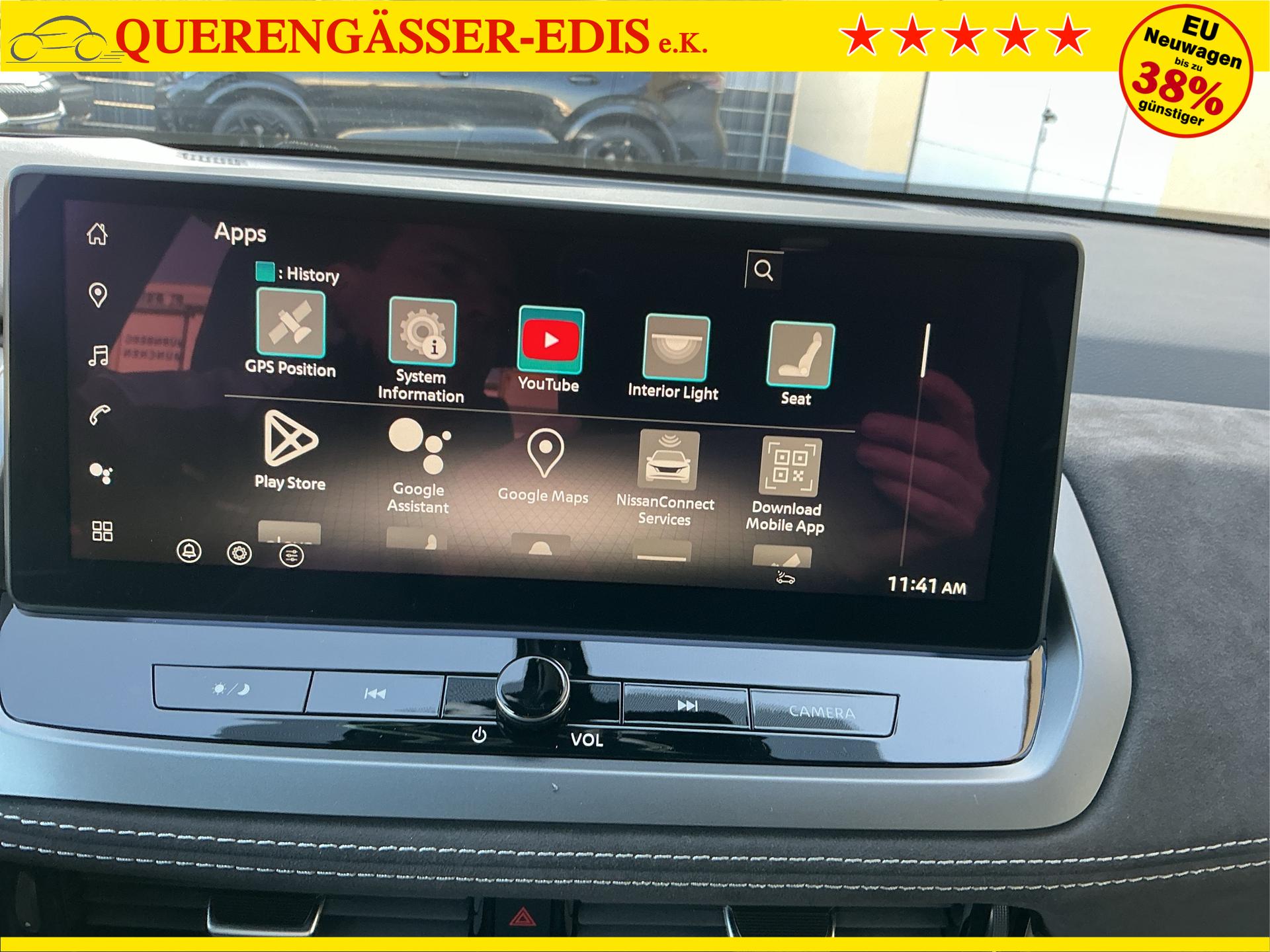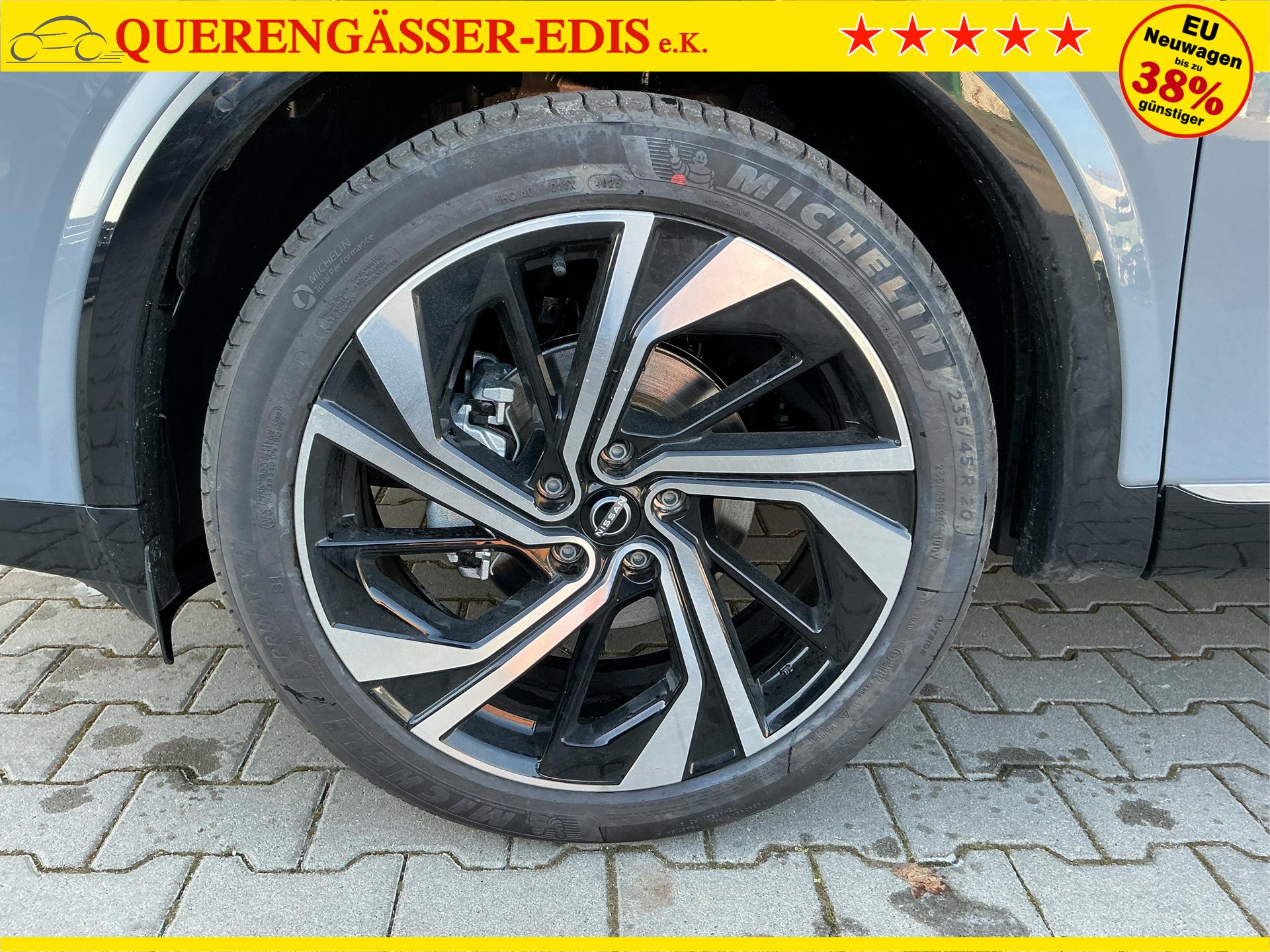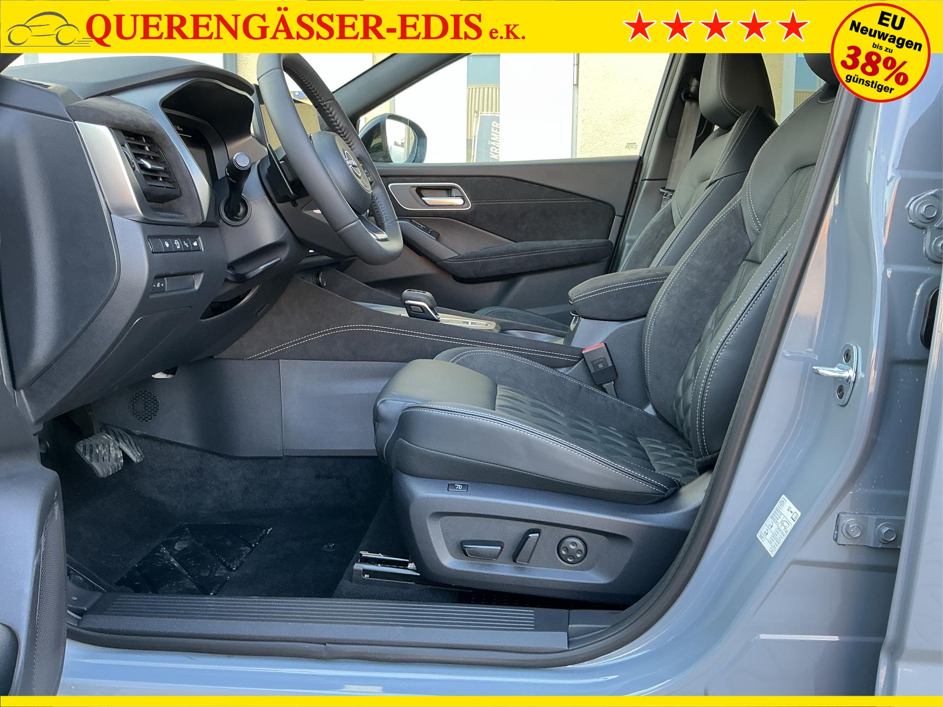 • NISSAN Fahrerassistenzsysteme › Intelligenter Adaptiver Geschwindigkeits- und Abstands-Assistent › Intelligenter Autonomer Notbrems-Assistent hinten für feststehende und sich langsam bewegende Objekte › Intelligenter Autonomer Notbrems-Assistent vorne mit Fußgänger- und Radfahrererkennung und KreuzungsAssistent › Intelligenter Frontkollisionswarnungs-Assistent › Intelligente Müdigkeitserkennung › Intelligenter Spurhalte-Assistent aktiv mit korrigierendem Bremseingriff › Querverkehrswarner, hinten › Totwinkel-Assistent aktiv mit korrigierendem Bremseingriff vorhanden