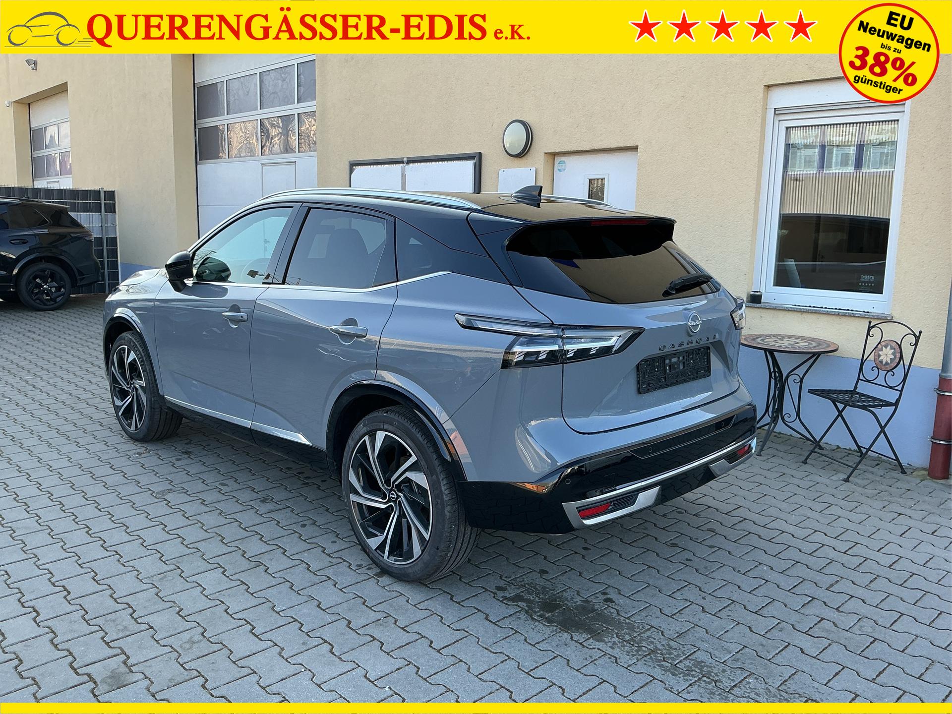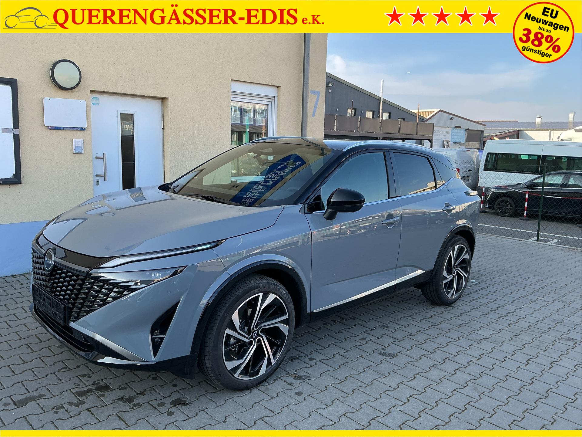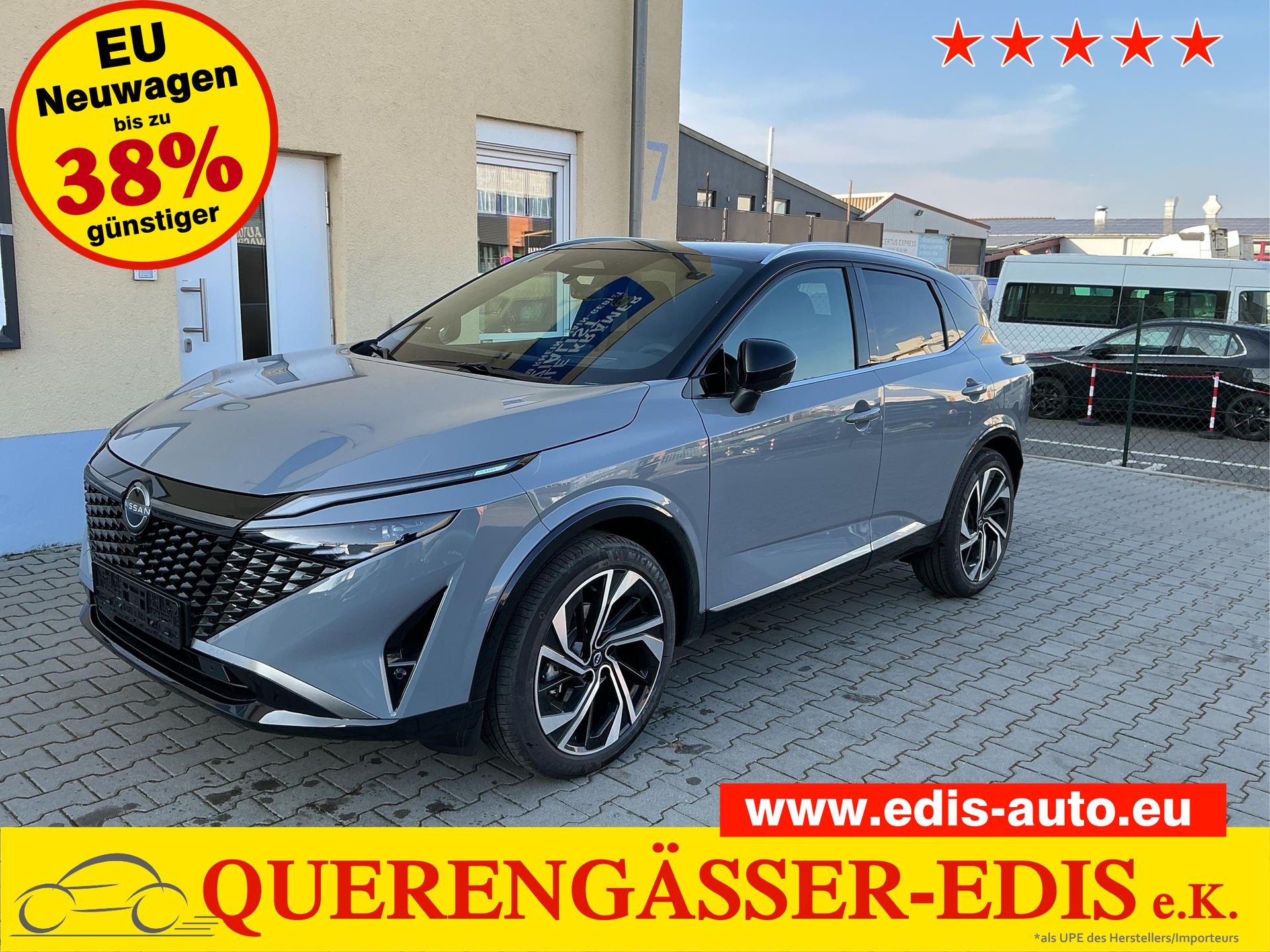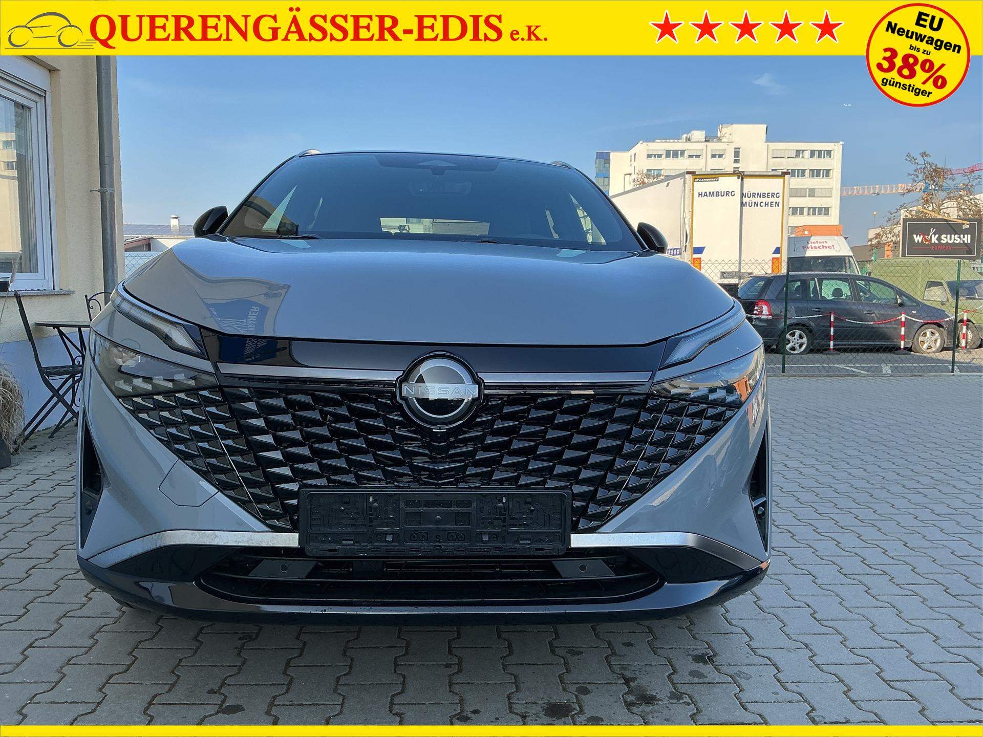 • NISSAN Fahrerassistenzsysteme › Intelligenter Adaptiver Geschwindigkeits- und Abstands-Assistent › Intelligenter Autonomer Notbrems-Assistent hinten für feststehende und sich langsam bewegende Objekte › Intelligenter Autonomer Notbrems-Assistent vorne mit Fußgänger- und Radfahrererkennung und KreuzungsAssistent › Intelligenter Frontkollisionswarnungs-Assistent › Intelligente Müdigkeitserkennung › Intelligenter Spurhalte-Assistent aktiv mit korrigierendem Bremseingriff › Querverkehrswarner, hinten › Totwinkel-Assistent aktiv mit korrigierendem Bremseingriff vorhanden