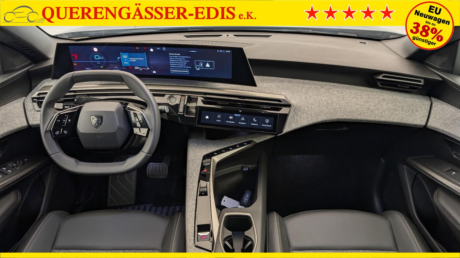 • Panoramic Navigation-Paket: Kabelloses Smartphone-Ladegerat (Leistung 15 W) Virtuelle PEUGEOT i-Toggles mit 10 personalisierbaren Schnellzugriffen PEUGEOT i-Connect Advanced Connected 3D-Navigation PEUGEOT i-Cockpit mit gebogenem, schwebendem 21-Zoll-HD-Bildschirm
