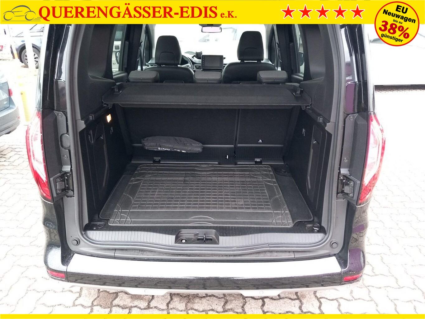 Sonderlackierung Metallic Black Pearl schwarz, Parkbremse elektrisch, Reserverad als Notrad, Fahrassistenz-System: Fernlichtassistent, LM-Felgen 17 Zoll, Reifen 205/55 R17, Family-Paket (Handschuhfach Schublade (Easy-Life) / Innenspiegel mit Abblendautomatik / Kinderspiegel (zusätzlicher Innenspiegel für den Fond) / Klapptisch in Fahrer- und Beifahrersitzlehne integriert), Sitz-Paket (Lendenwirbelstütze Sitz vorn links / Sitz vorn rechts höhenverstellbar / Sitzheizung vorn), Multimedia-System Easy Link mit Navigationssystem (Touchscreen 8") (Radioempfang digital (DAB+) / Touchscreen (8,0 Zoll) / Freisprecheinrichtung (Bluetooth) mit Sprachsteuerung / Smartphone Schnittstelle (Apple CarPlay & Android Auto) / USB-Anschluss / Audio-/Radio-Fernbedienung am Lenkrad), Geschwindigkeits-Regelanlage (Tempomat) (Geschwindigkeits-Begrenzeranlage), Einparkhilfe vorn und hinten (Einparkhilfe seitlich / Einparkhilfe hinten / Einparkhilfe vorn), 3-Punkt-Sicherheitsgurt hinten, Ablagefach über den Sonnenblenden, Außentemperaturanzeige, Heckklappe mit Verglasung / Heckscheibenheizung und Heckwischeranlage, Heckscheibe heizbar, Innenraumspiegel, Karosserie: 5-türig, Komfort-Paket, Lenkrad (Leder-Optik), Lenksäule (Lenkrad) höhenverstellbar, Lenksäule (Lenkrad) längsverstellbar, Luftdüsen im Fond, Motor 1,3 Ltr. - 96 kW TCE, Otto-Partikelfilter (GPF), Radstand 2716 mm, Schadstoffarm nach Abgasnorm Euro 6e, Schiebetür links mit Fenster, Schiebetür rechts mit Fenster, Sicherheitsgurte vorn höhenverstellbar, Sitz vorn links höhenverstellbar, Sitzbezug / Polsterung: Stoff, Sonnenblenden mit Spiegel (beleuchtet), Steckdose (12V-Anschluß) im Koffer-/Laderaum, Stoßfänger Wagenfarbe, Türdichtungen mit Staubschutz, Türgriffe außen Wagenfarbe, Warnanlage für Sicherheitsgurte, Anti-Blockier-System (ABS), Fahrassistenz-System: Aktiver Notbrems-Assistent mit Fußgängererkennung, Elektron. Stabilitäts-Programm (ESP), Getriebe 7-Gang - Doppelkupplungsgetriebe, Klimaanlage im Fond, Klimaautomatik 2-Zonen mit autom. Umluft-Control, Airbag Beifahrerseite abschaltbar, Airbag Fahrer-/Beifahrerseite, Fensterheber elektrisch hinten, Fensterheber elektrisch vorn, Isofix-Aufnahmen für Kindersitz, Kopf-Airbag-System (Windowbag), Mittelarmlehne vorn mit Ablagefach, Rücksitzbank geteilt/klappbar (1/3-2/3), Seitenairbag vorn, Verglasung hinten stark abgedunkelt, Zentralverriegelung / Startanlage Handsfree Entry & Drive, Zentralverriegelung mit Fernbedienung, Bordcomputer, Dachreling inkl. Basisträger Dachtransportsystem, Fahrassistenz-System: Verkehrszeichenerkennung mit Geschwindigkeits-Warnanzeige, Rückfahrkamera, Fahrassistenz-System: Sicherheitssystem mit automatischem Notruf (ERA GLONASS / eCall), Lenkrad (Leder), Außenspiegel elektr. anklappbar, Außenspiegel elektr. verstell- und heizbar, Blinkleuchte in Außenspiegel integriert, Licht- und Regensensor, Scheinwerfer Full-LED mit LED-Signatur (Pure Vision), Tagfahrlicht LED, Fahrassistenz-System: Müdigkeitserkennungs-Sensor, Fahrassistenz-System: Spurhalteassistent Aktiv, Reifendruck-Kontrollsystem, Start/Stop-Anlage