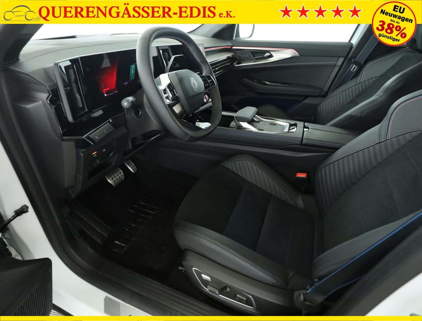 Driving-Paket (Fahrassistenz-System: Active Driver Assist / Lenkrad heizbar / Frontscheibe heizbar / Intelligente Adaptive Geschwindigkeitsregelanlage / Matrix-LED-Scheinwerfer), Panoramadach Solarbay fest (Glas), Infotainment-System: OpenR link (12" Touchscreen, Harman-Kardon Premium Sound, Subwoofer, Navigationssystem Google Maps), City-Premium-Paket (Einstiegsbeleuchtung mit Logo Projektionsfunktion / Kamerasystem Around View 360° / Außenspiegel elektr. verstell-, heiz- und anklappbar, mit Memory / Easy-Park-Assistent), Sitze vorn elektr. verstellbar, Head-up-Display, 3. Bremsleuchte, Automatischer Scheibenwischer, Fahrassistenz-System: Bremsassistent, Innenausstattung: Esprit Alpine, Kopfstützen hinten (3-fach), Kopfstützen vorn verstellbar, LM-Felgen 20 Zoll, Radioempfang Digital (DAB), Reifen 245/45 R20, Verglasung hinten abgedunkelt, Ambiente-Beleuchtung, Außenausstattung: Esprit Alpine, Außenspiegel schwarz lackiert, Fahrassistenz-System: Anhänger-Stabilisierungs-Programm (TSA), Geräuschsimulator (Außensound), Geschwindigkeits-Begrenzeranlage, Heckscheibe heizbar, Hybrid 147 kW E-Tech (Motor 1,2 Ltr. - 96 kW), Induktionsladeschale für Smartphone, Innenspiegel mit Abblendautomatik, Ionisator zur Luftreinigung, Karosserie: 5-türig, Kombiinstrument digital (12,3 Zoll), Lenkrad (Alcantara / Kunstleder), Lenksäule (Lenkrad) längsverstellbar, Luftdüsen im Fond, Mittelkonsole mit Armlehne und Staufach, Parkbremse elektrisch mit Auto-Hold-Funktion, Radstand Standard, Sonnenblenden mit Spiegel (beleuchtet), Warnanlage für Sicherheitsgurte, Anti-Blockier-System (ABS), Antriebsart: Frontantrieb, Getriebe Automatik - Multi-Mode (15-Stufen), Klimaautomatik 2-Zonen mit autom. Umluft-Control, Airbag Beifahrerseite abschaltbar, Airbag Fahrer-/Beifahrerseite, Fensterheber elektr. mit Impulsgeber, Isofix-Aufnahmen für Kindersitz, Kopf-Airbag-System (Windowbag), Seitenairbag vorn, Sitzbezug / Polsterung: Alcantara / Stoff, Sitzheizung vorn, Zentralverriegelung mit Fernbedienung, Eco Mode (Fahrmodusschalter), Heckklappenbetätigung elektrisch, Adaptive Geschwindigkeitsregelanlage (ACC), Fahrassistenz-System: Abstandswarner, Fahrassistenz-System: Berganfahr-Assistent (HSA), Fahrassistenz-System: Sicherheitssystem mit automatischem Notruf (ERA GLONASS / eCall), Fahrassistenz-System: Fernlichtassistent, Fahrassistenz-System: Totwinkel-Assistent mit aktivem Lenkeingriff, Heckleuchten LED mit Moiré-Effekt, Licht- und Regensensor, Tagfahrlicht LED, Einparkhilfe vorn, hinten und seitlich mit Rückfahrkamera, Fahrassistenz-System: Autonomer Notbrems-Assistent mit Frontkollisionswarnung und Fußgänger- und Fahrraderkennung, Fahrassistenz-System: Müdigkeitserkennungs-Sensor, Fahrassistenz-System: Querverkehrs-Assistent hinten mit Fußgänger Notbremssystem, Reifendruck-Kontrollsystem