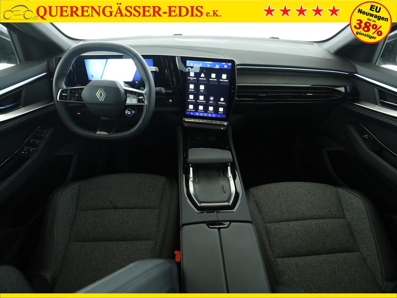 Panoramadach Solarbay fest (Glas), Winter-Paket (Lenkrad heizbar / Sitzheizung vorn / Frontscheibe heizbar), Heckklappenbetätigung elektrisch (Kofferraumleiste (Aluminium)), 12V-Steckdose vorn, Bluetooth-Schnittstelle, Fahrassistenz-System: Bergabfahr-Assistent, Lenksäule (Lenkrad) höhen- und tiefenverstellbar, LM-Felgen 20 Zoll, Reifen 245/45 R20, Smartphone-Schnittstelle (Apple CarPlay / Android Auto), USB-Schnittstelle vorn und hinten, Verglasung ab B-Säule verdunkelt, Zentralairbag vorn, Ambiente-Beleuchtung, Dynamisches Abbiegelicht hinten, Elektr. Bremskraftverteilung, Fahrassistenz-System: Anhänger-Stabilisierungs-Programm (TSA), Geräuschsimulator (Außensound), Heckscheibe heizbar, Hybrid 147 kW E-Tech (Motor 1,2 Ltr. - 96 kW), Induktionsladeschale für Smartphone, Innenspiegel mit Abblendautomatik, Innenspiegel rahmenlos, Ionisator zur Luftreinigung, Karosserie: 5-türig, Kombiinstrument digital (12,3 Zoll), Luftdüsen im Fond, Mittelkonsole mit Armlehne und Staufach, Parkbremse elektrisch mit Auto-Hold-Funktion, Sitz vorn links verstellbar (6-fach), Sitz vorn rechts verstellbar (6-fach), Sitzbezug / Polsterung: Stoff, Sonnenblenden mit Spiegel (beleuchtet), Warnanlage für Sicherheitsgurte, Infotainment-System: OpenR link (12" Touchscreen, Arkamys Auditorium Sound, Navigationssystem mit Google Maps), Anti-Blockier-System (ABS), Antriebsart: Frontantrieb, Elektron. Stabilitäts-Programm (ESP), Getriebe Automatik - Multi-Mode (15-Stufen), Klimaautomatik 2-Zonen mit autom. Umluft-Control, Airbag Beifahrerseite abschaltbar, Airbag Fahrer-/Beifahrerseite, Fensterheber elektr. mit Impulsgeber, Isofix-Aufnahmen für Kindersitz, Kopf-Airbag-System (Windowbag), Rücksitzlehne geteilt (40:20:40) mit Durchlade, Seitenairbag vorn, Zentralverriegelung mit Fernbedienung, Eco Mode (Fahrmodusschalter), Fahrassistenz-System: Multi-Sense (Fahrmodusschalter), Adaptive Geschwindigkeitsregelanlage (ACC), Fahrassistenz-System: Abstandswarner, Fahrassistenz-System: Berganfahr-Assistent (HSA), Geschwindigkeits-Regelanlage (Tempomat) mit Verkehrszeichenerkennung, Fahrassistenz-System: Sicherheitssystem mit automatischem Notruf (ERA GLONASS / eCall), Lenkrad mit Schaltwippen/-tasten, Außenspiegel elektr. anklappbar, Außenspiegel elektr. verstell- und heizbar, Fahrassistenz-System: Fernlichtassistent, Heckleuchten LED mit Moiré-Effekt, Licht- und Regensensor, Scheinwerfer Adaptive LED Vision, Tagfahrlicht LED, Einparkhilfe vorn, hinten und seitlich mit Rückfahrkamera, Fahrassistenz-System: Autonomer Notbrems-Assistent mit Frontkollisionswarnung und Fußgänger- und Fahrraderkennung, Fahrassistenz-System: Müdigkeitserkennungs-Sensor, Fahrassistenz-System: Spurhalteassistent Aktiv, Reifendruck-Kontrollsystem