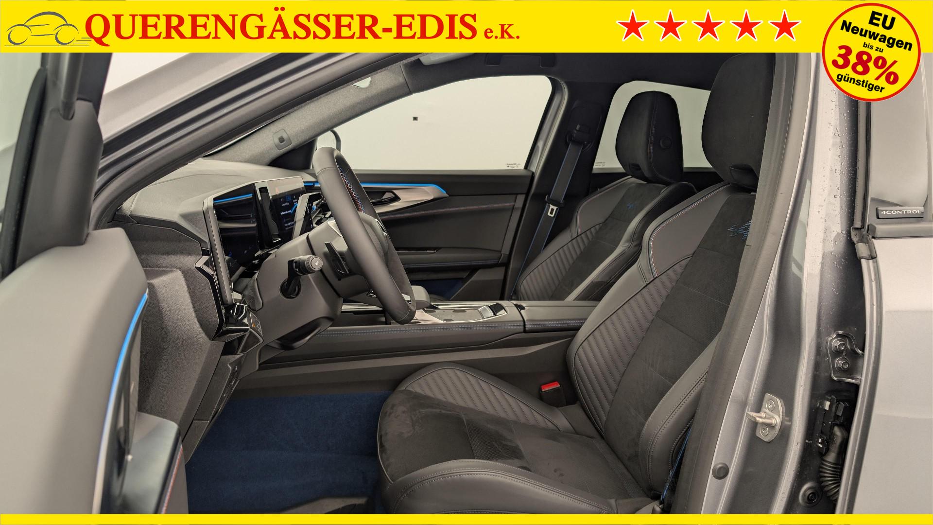 • Alcantara-Mischpolsterung mit blauen Nahten und leuchtendem Alpine-Logo