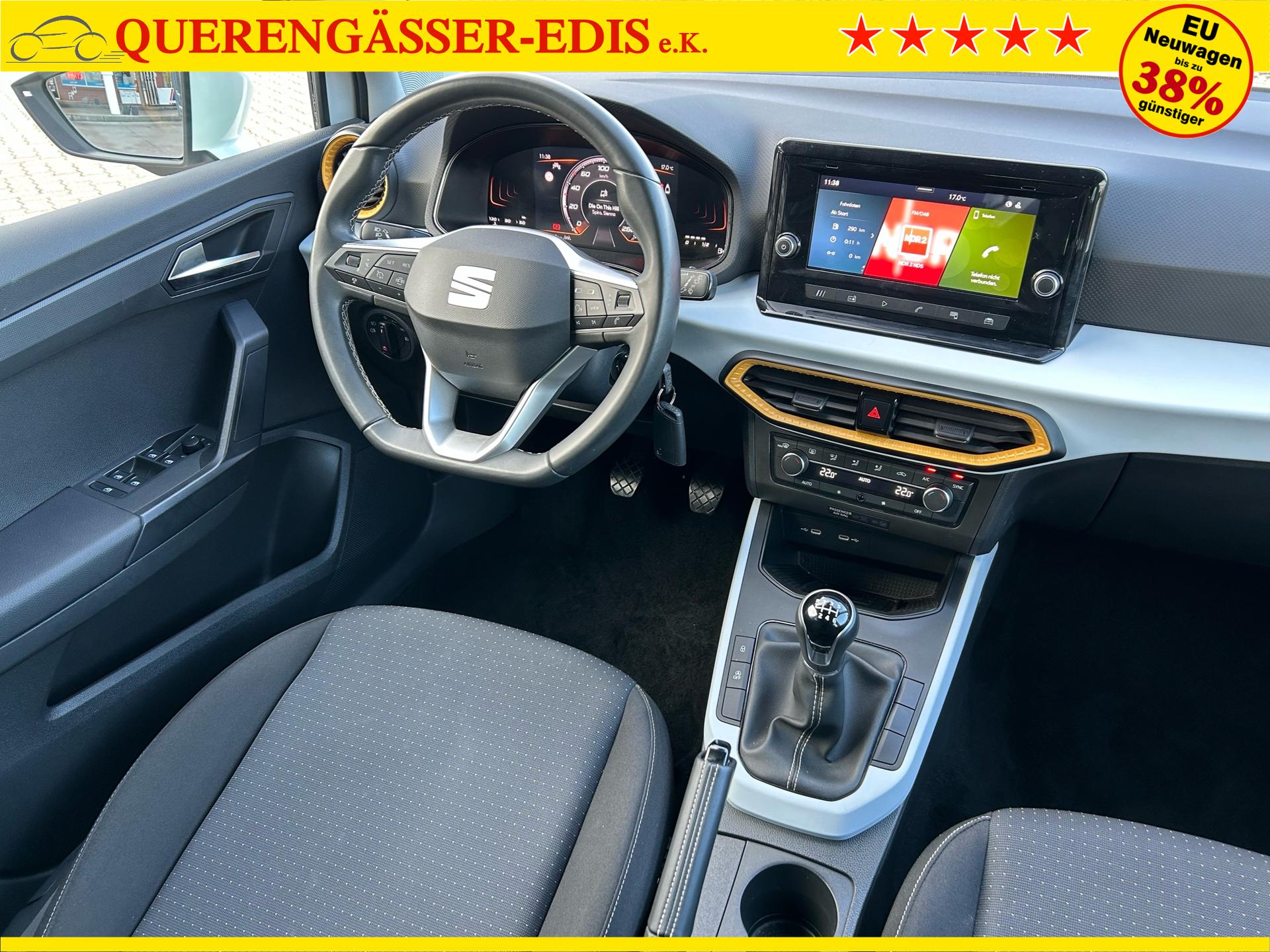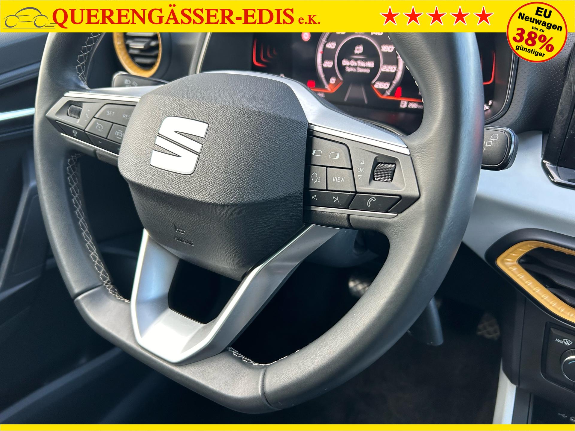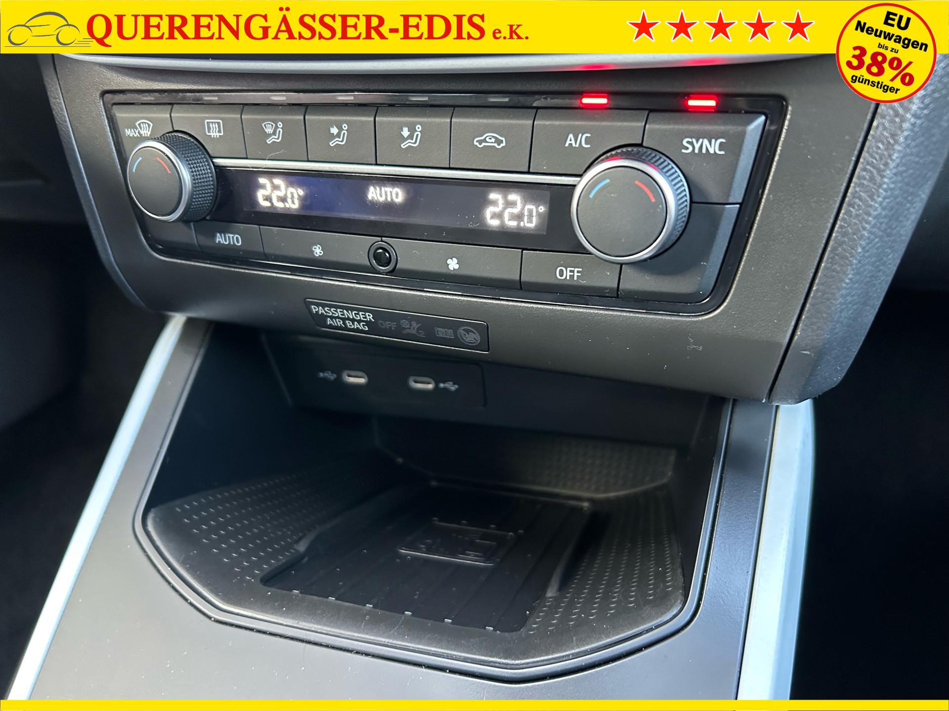 Seat Arona Style 1.0 TSI 115PS in Magnetic Grau / Dach Midnight Black Metallic mit folgender Sonderausstattung:Wireless App-ConnectConnectivity BoxLicht- und RegensensorInnenspiegel automatisch abblendend2-Zonen-KlimaautomatikNebelscheinwerferVoll-LED-ScheinwerferAbstandstempomat "ACC"FernlichtassistentSpurwechselassistentMittelarmlehne vorneSeitenscheiben hinten und Heckscheibe abgedunkelt5 Jahre oder 100.000km Garantie (ab Garantiebeginn)Das Fahrzeug kann deutschlandweit angeliefert werden.Elektrische Fensterheber vorne und hintenHöhenverstellbares LenkradMittelarmlehneHöhenverstellbarer FahrersitzInnenspiegel automatisch abblendendLaderaumabdeckungDoppelter LaderaumbodenSitzbank hinten geteiltRadio / USBBluetooth / FreisprecheinrichtungReifendruckkontrolleRückleuchten mit LEDAußenspiegel elektrisch verstell,- beheiz- und anklappbarVoll LED ScheinwerferFernlichtassistentSpurhalteassistentAutomatische Distanzregelung ACC und Umfeldbeobachtungssystem "Front Assist" mit City-Notbremsfunktion (Notbremsassistent und Abstandstempomat)VerkehrszeichenerkennungEU-FahrzeugGarantiebeginn 01/2025Für weitere Fragen stehen wir Ihnen telefonisch oder per E-Mail gern zur Verfügung. Gern nehmen wir Ihr Fahrzeug in Zahlung. Bei Bedarf bieten wir Ihnen verschiedene Finanzierungsmodelle unserer Partnerbanken - individuell auf Sie zugeschnitten. Auch Finanzierungsübernahme, Verrechnung des Altfahrzeugs in die Neufinanzierung und Kreditablösung. Irrtümer, Zwischenverkauf und Änderungen vorbehalten. Ausstattungs- und Verbrauchsangaben basieren auf der Abfrage der VIN-Daten über das DAT SilverDAT System. In Einzelfällen kann es zu Datenfehlern kommen. Die gemachten Angaben gelten nicht als zugesicherte Eigenschaft im Sinne des BGB 434 Abs. 1 Satz 3.