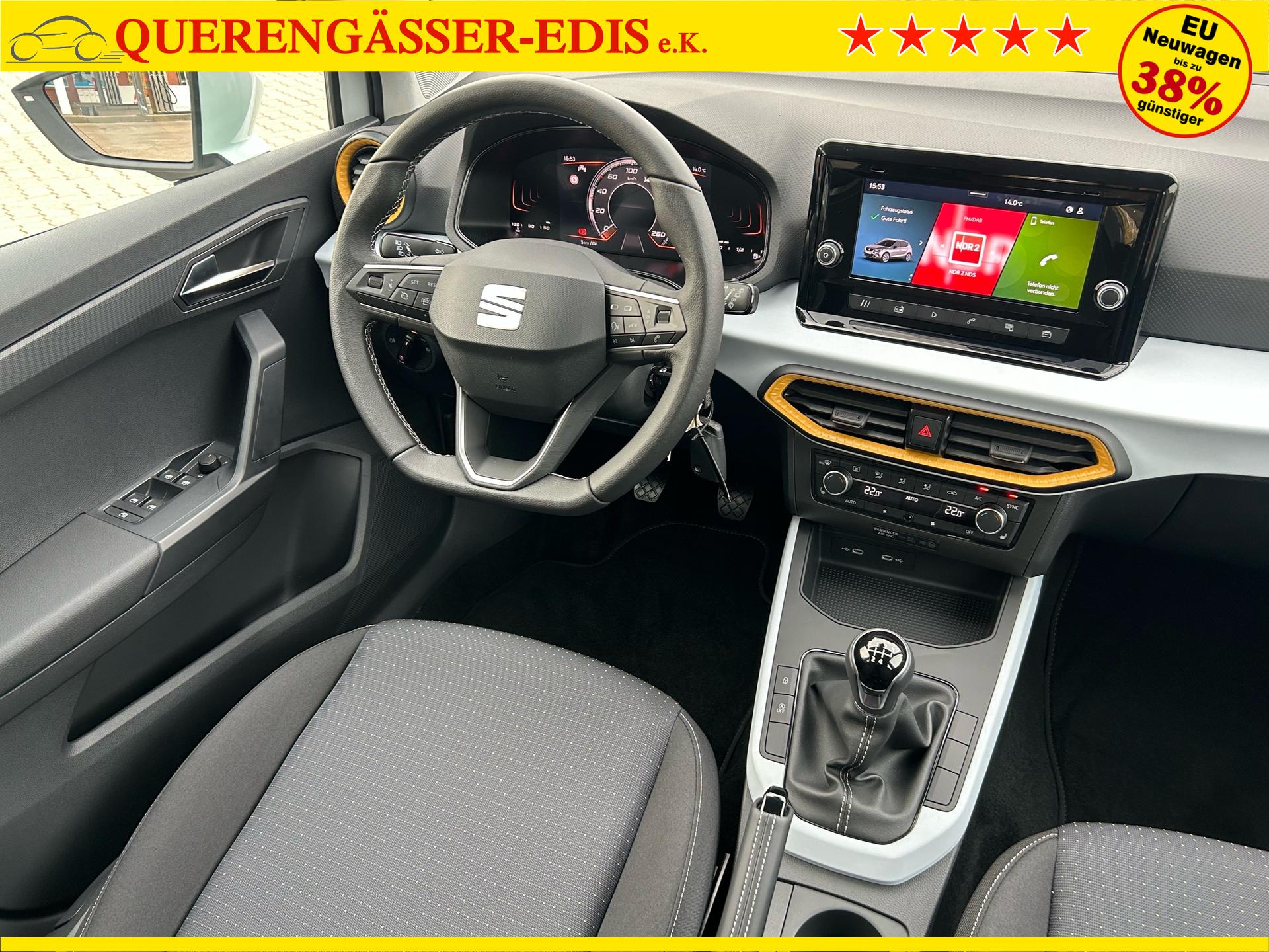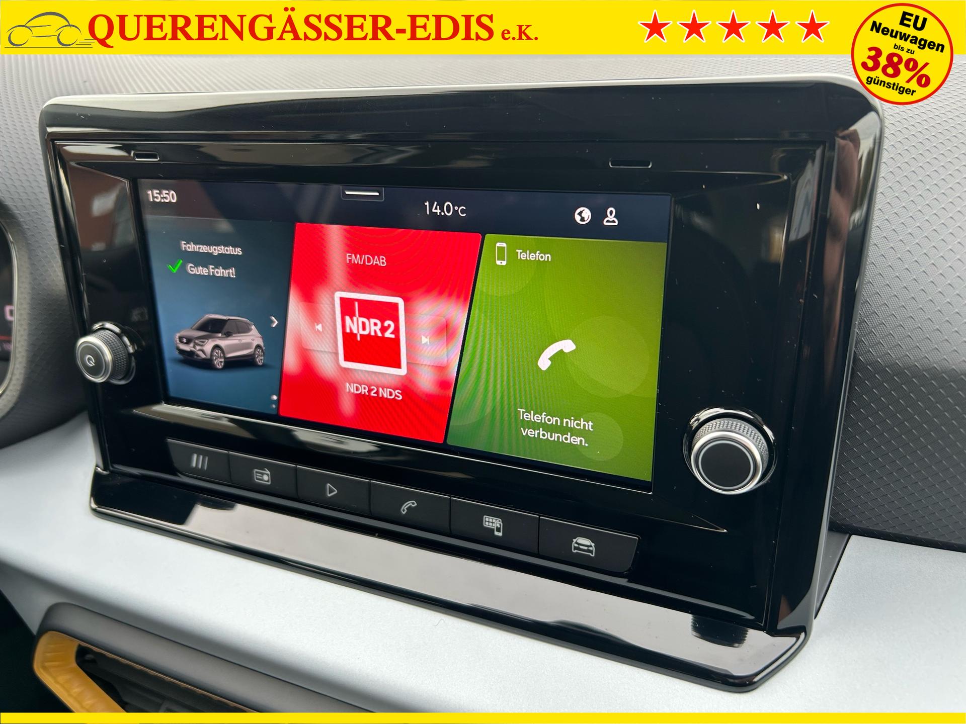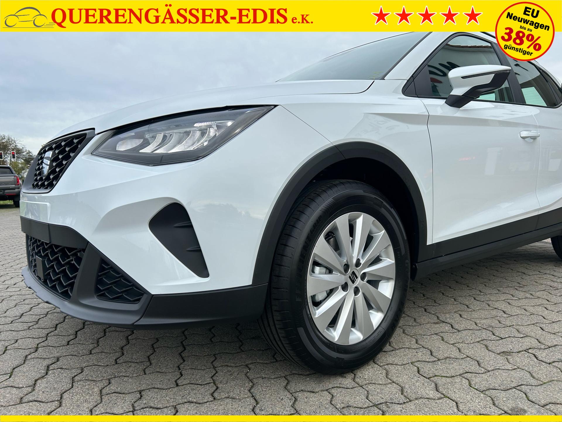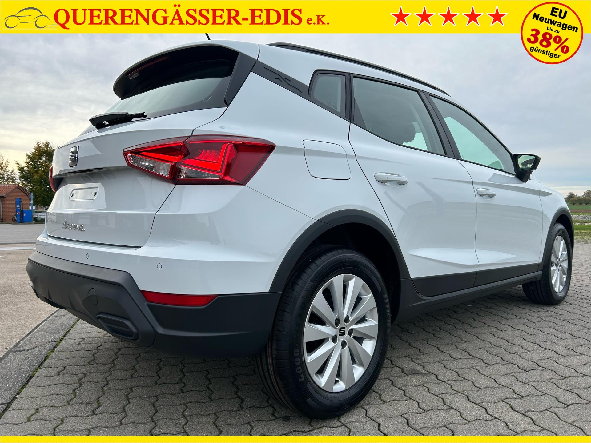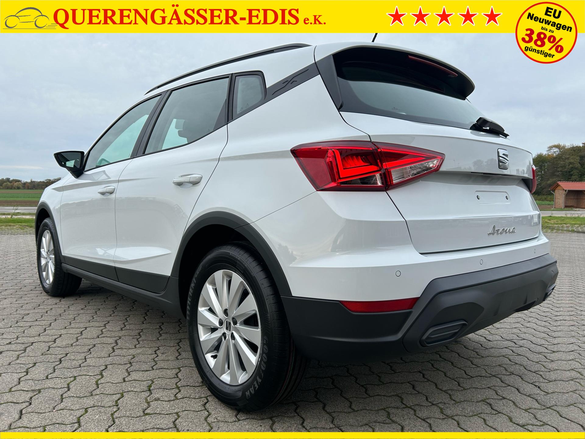 Seat Arona Style 1.0 TSI 95PS in Glacial Weiß Metallic mit folgender Sonderausstattung:WinterpaketVorbereitung Anhängevorrichtung (Das Fahrzeug hat keine Anhängerkupplung verbaut, sondern nur die Vorbereitung!)NotradWireless Full LinkKlima-Komfort-Paket (Innenspiegel automatisch abblendend, Regensensor und 2-Zonen-Klimaautomatik)5 Jahre oder 100.000km Garantie (ab Garantiebeginn)Das Fahrzeug kann deutschlandweit angeliefert werden.Elektrische Fensterheber vorne und hintenHöhenverstellbares LenkradHöhenverstellbarer Fahrer- und BeifahrersitzInnenspiegel automatisch abblendendLaderaumabdeckungDoppelter LaderaumbodenSitzbank hinten geteiltRadio / USBBluetooth / FreisprecheinrichtungReifendruckkontrolleRückleuchten mit LEDAußenspiegel elektrisch verstell,- beheiz- und anklappbarLED ScheinwerferSpurhalteassistentUmfeldbeobachtungssystem "Front Assist" mit City-Notbremsfunktion (Notbremsassistent)VerkehrszeichenerkennungEU-FahrzeugGarantiebeginn 10/2025UPE inkl. Überführungskosten ca. 28.680,00 EURFür weitere Fragen stehen wir Ihnen telefonisch oder per E-Mail gern zur Verfügung. Gern nehmen wir Ihr Fahrzeug in Zahlung. Bei Bedarf bieten wir Ihnen verschiedene Finanzierungsmodelle unserer Partnerbanken - individuell auf Sie zugeschnitten. Auch Finanzierungsübernahme, Verrechnung des Altfahrzeugs in die Neufinanzierung und Kreditablösung. Irrtümer, Zwischenverkauf und Änderungen vorbehalten. Ausstattungs- und Verbrauchsangaben basieren auf der Abfrage der VIN-Daten über das DAT SilverDAT System. In Einzelfällen kann es zu Datenfehlern kommen. Die gemachten Angaben gelten nicht als zugesicherte Eigenschaft im Sinne des BGB 434 Abs. 1 Satz 3.