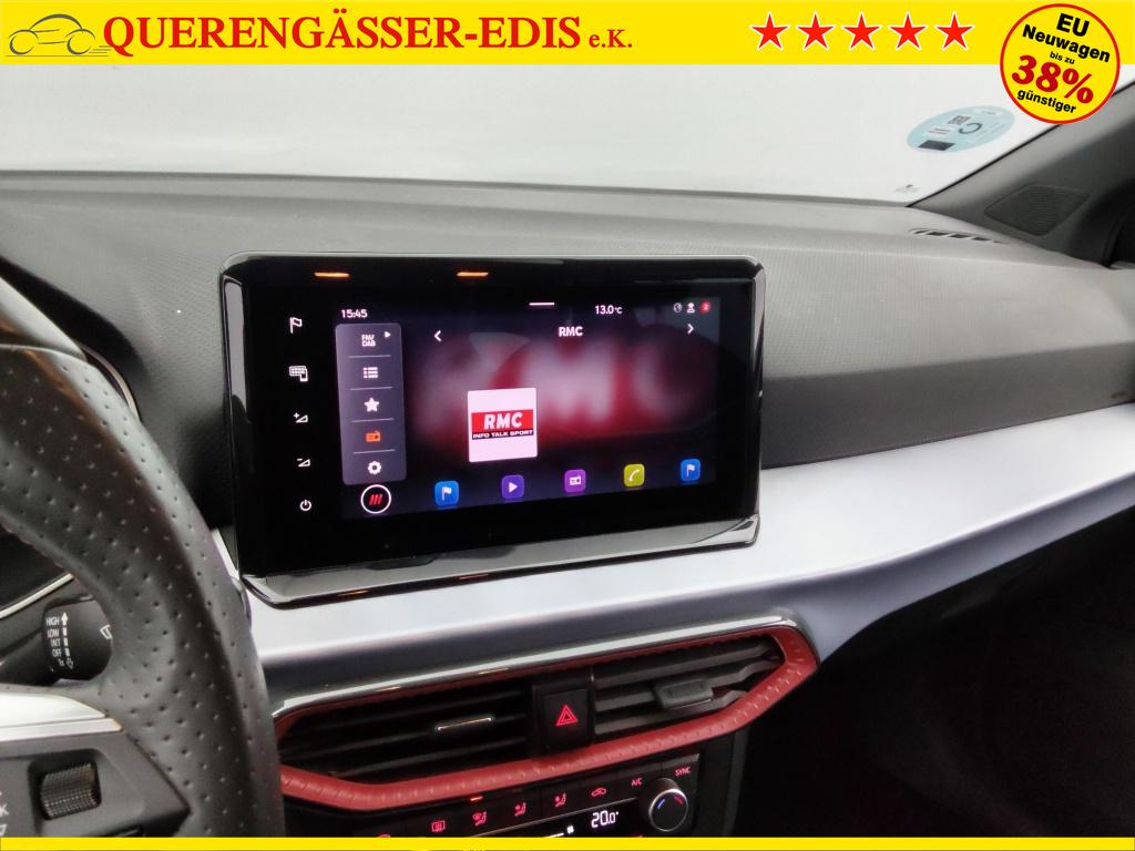 • Abgeflachtes Multifunktions-Sportlenkrad in perforiertem Nappaleder mit roten Nahten und FR-Logo.