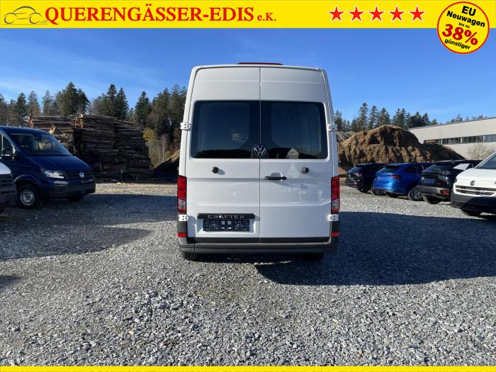 2 USB-C Daten-/Ladebuchsen (Mittelkons.) mit erhöhter Ladeleistung und 2 USB-C Ladebuchsen (Mitte, Frontscheibe), Digitaler Radioempfang (DAB+), Infotainment mit 26 cm (10,4) Touch-Farbdisplay, Mobiltelefonanbindung über Bluetooth mit induktiver Ladefunktion, Radio Composition mit 26 cm (10,4) Touch-Farbdisplay mit 4 Lautsprechern, Beleuchtung im Laderaum: 4 LED-Spots, Halogen-Doppelscheinwerfer, Tagesfahrlicht mit Assistenzfahrlicht u.Coming- u. Leaving-home Funktion automatisch, Verbundglas-Frontscheibe in Wärmeschutzverglasung, Wärmeschutzverglasung, Bodenbelag im Fahrerhaus aus Gummi, Einstieggriffe an den Hecksäulen, Multifunktionslenkrad, Nichtraucherausführung, Schalttafel mit Zusatzkonsole inklusive 1 DIN-Schacht und 4 zusätzlichen Schalterplätzen, Trennwand, mit festem Fenster (mit Schutzgitter), Verzurrösen zur Ladegutsicherung, Heckfenster, beheizbar, Klimaanlage Air Care Climatronic, Ablagenpaket 2: Dachgalerie mit zwei 1 DIN-Schächten und Leseleuchte, Assistenzpaket Basic inkl. Intelligent Speed Assist und Geschwindigkeitsregelanlage, 16'' Stahlräder mit 1.050 kg Traglast, in Silber, Reserverad (Stahlfelge) mit Fahrbereifung sowie Bordwerkzeug und Wagenheber, Airbag für Fahrer und Beifahrer, Diebstahl-Alarmanlage mit Back-up-Horn, Innenraumüberwachung und Abschleppschutz (für Crafter mit Trennwand) [7AQ] , Elektronisches Stabilitätsprogramm (ESP) inkl. ABS, ASR, EDS, SWA, Beifahrerdoppelsitzbank rechts mit Ablagefach und klappbarer Lehne mit Ablagetisch, Sitz links, in der 1.Sitzreihe, Sitzheizung, links und rechts, getrennt regelbar, in der 1.Sitzreihe, Fahrzeugzulassung mit einem zulässigen Gesamtgewicht von 3,5 t, Werksgarantie 5 Jahre, 2 12-V-Steckdosen insges. im Fahrerhaus (1 in Schalttafel, bei Linkslenker zusätzlich 2. im linken Sitzgestell) [EU4] , 2 Funkklappschlüssel, Ablenkungs- und Müdigkeitserkennung, Beheizbare Scheibenwaschdüsen vorn, Berganfahrassistent, Digital Cockpit, Einparkhilfe im Front- und Heckbereich, Front Assist mit Warnen und Bremsen auf Fahrzeuge, Fußgänger und Radfahrer, Geschwindigkeitsregelanlage (GRA) elektronisch, Kraftstofftank mit 75 l Tankvolumen, Reifendruck-Kontrollsystem (direkt messend), Scheibenwischer-Intervallschaltung mit Licht- und Regensensor, Seitenwindassistent, Spurhalteassistent Lane Assist, Zentralverriegelung mit schlüssellosem Startsystem Keyless Start, ohne Safesicherung [4I7] , Zulässiges Gesamtgewicht 3.500 kg, Motor-Start-Stopp-System mit Bremsenergie-Rückgewinnung, Außenspiegel links, konvex, mit integrierter LED-Blinkleuchte und Weitwinkelbereich, Außenspiegel rechts, konvex, mit integrierter LED-Blinkleuchte und Weitwinkelbereich, Außenspiegel, elektrisch einstell- und beheizbar, Heckflügeltüren mit Fensterausschnitten, Hochdach, außen in Wagenfarbe lackiert, Scharniere für Heckflügeltüren mit vergrößertem Öffnungswinkel (max. 270°), Schiebetür, rechts, im Lade-/Fahrgastraum, Stoßfänger vorne in Grau, Vorbereitung für Anhängevorrichtung (inkl. Gespannstabilisierung) mit Kabelsatz und Steuergerät, EU-Fahrzeug mit Tageszulassung