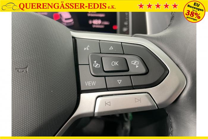 2 USB-C-Schnittstellen vorn, 2 USB-C-Ladebuchsen an der Mittelkonsole hinten Ladeleistung bis zu 45 W, 6 Lautsprecher, Android Auto, App-Connect Wireless für Apple CarPlay und Android Auto, Apple CarPlay, DAB (digitaler Radioempfang), Navigationssystem Discover Media, Sprachbedienung, Telefonschnittstelle mit induktiver Ladefunktion, Vorbereitet für VW Connect und VW Connect Plus, 2 LED-Leseleuchten vorn und 2 hinten, Abbiege- und Schlechtwetterlicht, Ambientebeleuchtung weiß, Automatisch abblendendes Fernlicht, Fahrlichtschaltung automatisch, mit LED-Tagfahrlicht sowie Coming home- und Leaving home-Funktion, LED-Plus-Scheinwerfer mit LED-Tagfahrlicht [8IU] , LED-Rückleuchten dunkelrot, Leuchte im Fußraum vorn, Leuchtweitenregulierung dynamisch, Lichtsensor, Tagfahrlicht, Umfeldbeleuchtung mit Logoprojektion, Fensterheber elektrisch, Frontscheibe in Verbundsicherheitsglas, wärmedämmend, Seitenscheiben hinten und Heckscheibe abgedunkelt, Chrom-Applikationen an Lichtdreh-, Spiegeleinstell-, Fensterheberschaltern Ausströmer mit Chromrahmen, Dekoreinlagen Deep Iron Grey für Instrumententafel, Mittelkonsole und Türverkleidungen vorn, Gepäckraumboden in 2 Höhen einstellbar, für ebene Ladefläche, Innenspiegel automatisch abblendend, Make-up-Spiegel beleuchtet in den Sonnenblenden, Mittelarmlehne vorn, Multifunktionslenkrad in Leder, mit Schaltwippen, Raucher-Paket, Schublade unter dem rechten Vordersitz, Textilfußmatten vorn und hinten, Business-Paket inkl. Navigationssystem Discover Media, 17 Leichtmetallfelgen Johannesburg, Oberfläche glanzgedreht, Bordwerkzeug, Tire Mobility Set: 12-Volt-Kompressor und Reifendichtmittel, ABS (Antiblockiersystem), Airbag für Fahrer und Beifahrer, mit Beifahrerairbag-Deaktivierung, Elektronisches Stabilisierungsprogramm mit Gegenlenkunterstützung, ABS, ASR, EDS, MSR und Gespannstabilisierung, Fahrerairbag, ISOFIX-Halteösen (Vorrichtung zur Befestigung von 2 Kindersitzen auf der Rücksitzbank), Kopfairbagsystem für Front- und Fondpassagiere inkl. Seitenairbags vorn, Notruf-Service, Laufzeit 10 Jahre ab Erstauslieferung, Voraussetzung: Verfügbarkeit benötigter Mobilfunknetze, Servolenkung elektromechanisch, geschwindigkeitsabhängig geregelt, Traktionskontrolle, Vorder- und Seitenairbags, Wegfahrsperre elektronisch, Beifahrersitzlehne komplett umklappbar, Komfortsitze, Lendenwirbelstützen vorn, auf Fahrerseite elektrisch einstellbar, Massagefunktion auf Fahrerseite, Rücksitzlehne asymmetrisch geteilt umklappbar, mit Mittelarmlehne, Sitzmittelbahnen der Vordersitze und der äußeren Rücksitzplätze in Mikrovlies ArtVelours, Sport-Komfortsitze vorn, Vordersitze beheizbar, VIN: WVGZZZA17SV035256, Änderungen, Irrtümer und Zwischenverkauf vorbehalten, Ablenkungs- und Müdigkeitserkennung, Abstandswarner, Automatische Distanzregelung ACC stop & go, mit Geschwindigkeitsbegrenzer, Berganfahrassistent, Bordcomputer, Digital Cockpit Pro, mehrfarbig, verschiedene Info-Profile wählbar, Einparkhilfe, Einparkhilfe hinten, Einparkhilfe vorne und hinten, Elektronische Parkbremse inkl. Auto-Hold-Funktion, Fernlichtassistent Light Assist, Fußgängererkennung, Notbremsassistent Front Assist (für automatische Distanzregelung ACC bis 210 km/h), Parklenkassistent Park Assist inkl. Einparkhilfe, Regensensor, Reifenkontrollanzeige, Scheibenwaschdüsen vorn automatisch beheizt, Spurhalteassistent Lane Assist, Verkehrszeichenerkennung, Zentralverriegelung ohne SAFE-Verriegelung, mit Funkfernbedienung und 2 Funkklappschlüsseln, Start-Stopp-System mit Bremsenergie-Rückgewinnung, Anhängevorrichtung abnehmbar und abschließbar, Außenspiegel elektrisch einstell-, anklapp-, beheizbar, mit Memory-Funktion, Außenspiegel elektrisch einstellbar, Außenspiegelgehäuse in Dachfarbe, Dachreling, Dachreling silber eloxiert, Stoßfänger in Wagenfarbe, Chromleiste im Kühlergrill, Türunterteile schwarz, mit Chromleiste, EU-Fahrzeug mit Tageszulassung
