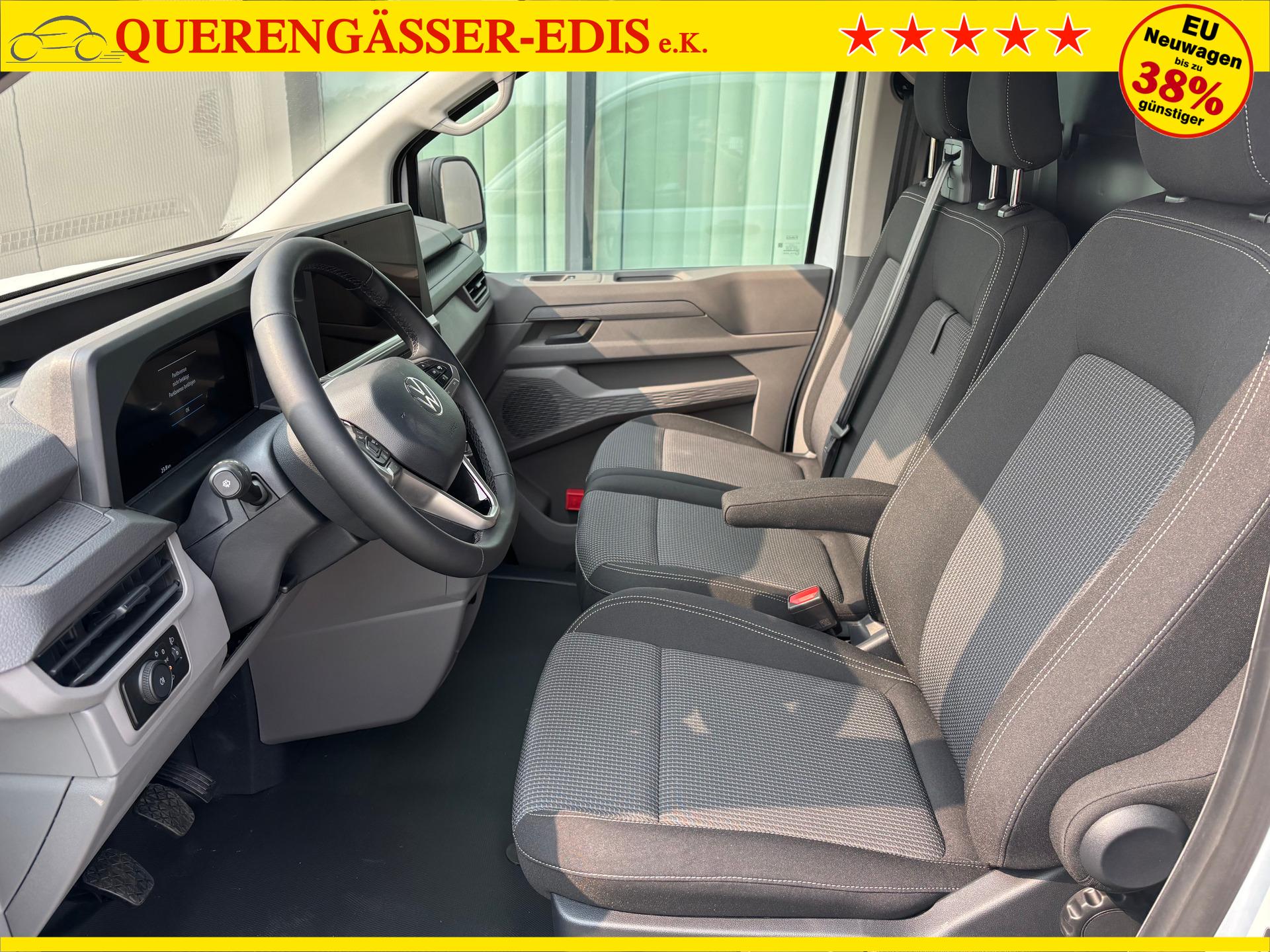 Volkswagen T7 Kastenwagen Basis 2.0 TDI 150PS, Weiß, 2-Zonen-Klimautomatik, M-Lederlenkrad, Anhängerkupplung, Parksensoren vorn/hinten, Rückfahrkamera, Frontscheibe beheizbar, Ganzjahresreifen, Sitzpaket 46 (inkl. Sitzheizung), Reserverad, 70l Tank, Laderaumpaket